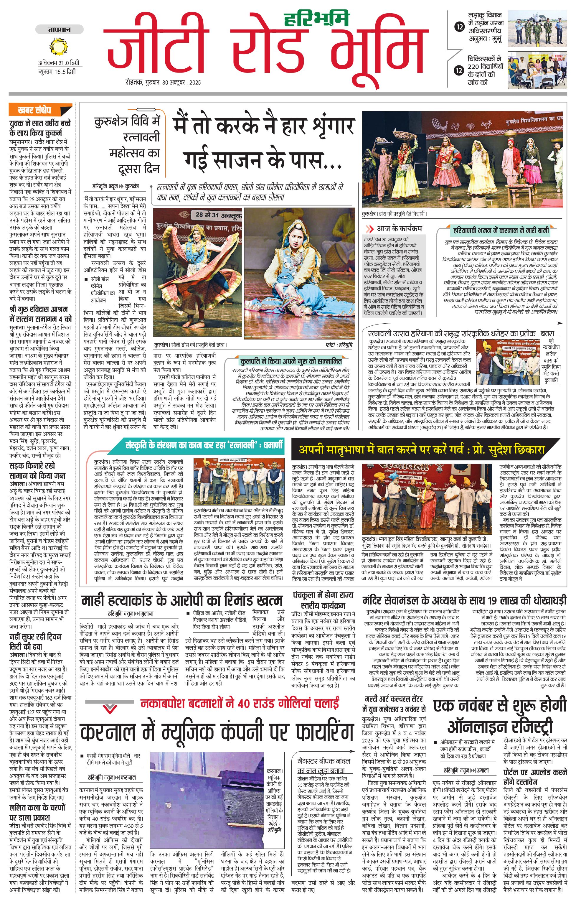 कुरुक्षेत्र - 30 Oct 2025 - - Page 1