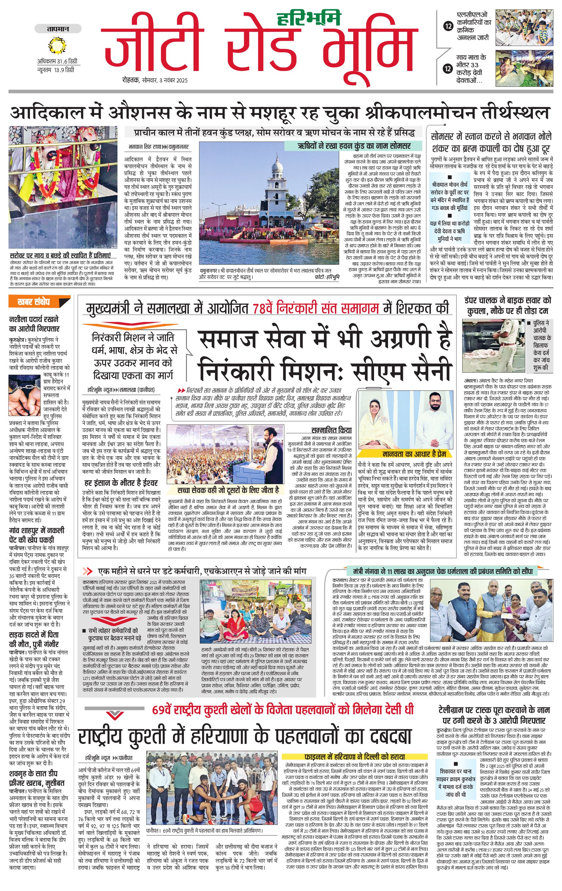 कुरुक्षेत्र - 03 Nov 2025 - - Page 1