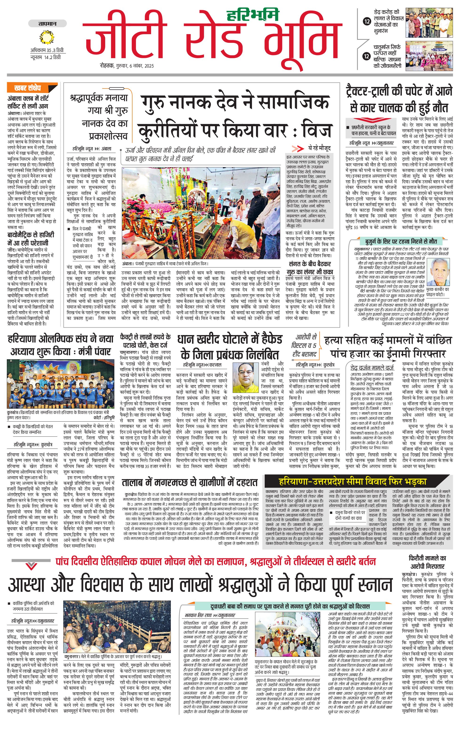 कुरुक्षेत्र - 06 Nov 2025 - - Page 1