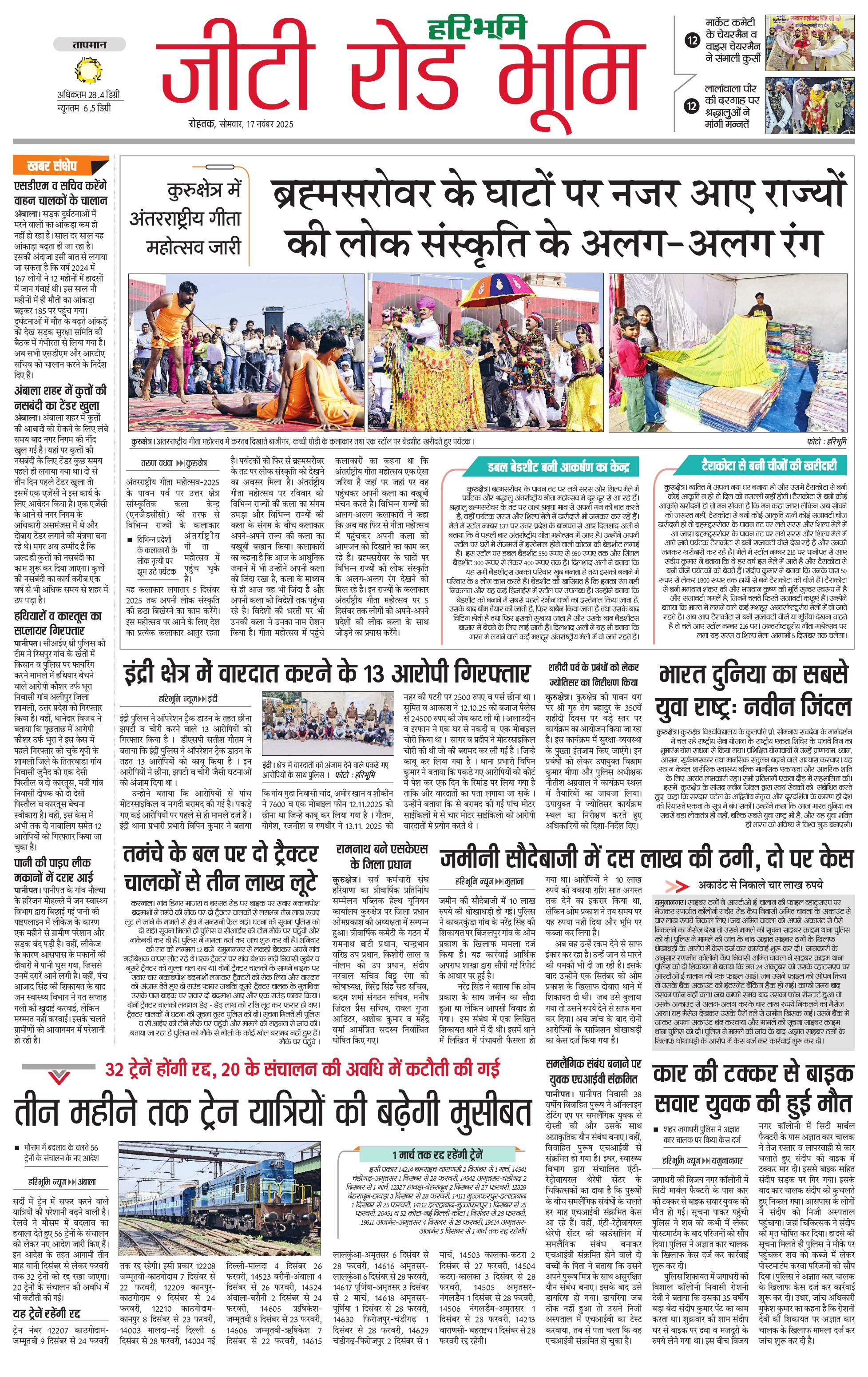 कुरुक्षेत्र - 17 Nov 2025 - - Page 1
