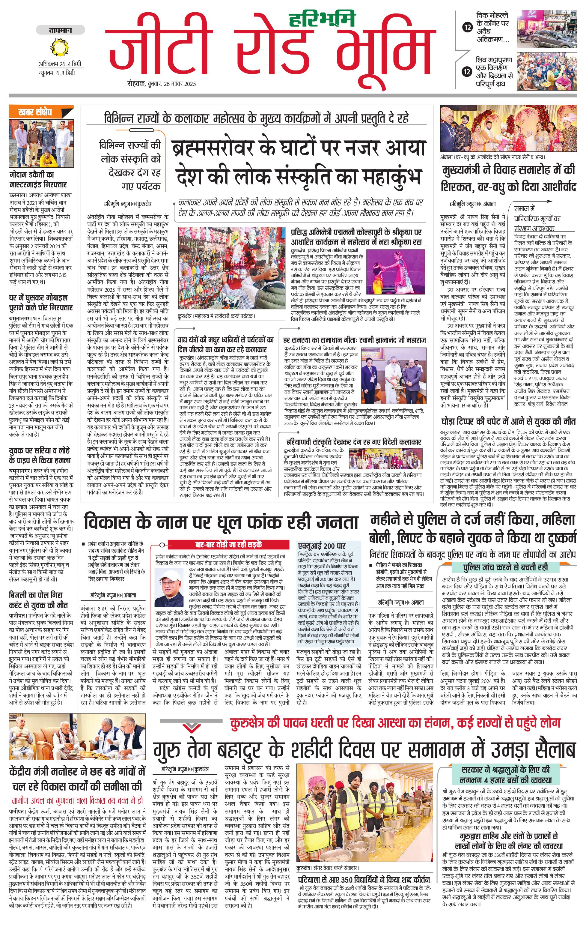 कुरुक्षेत्र - 26 Nov 2025 - - Page 1