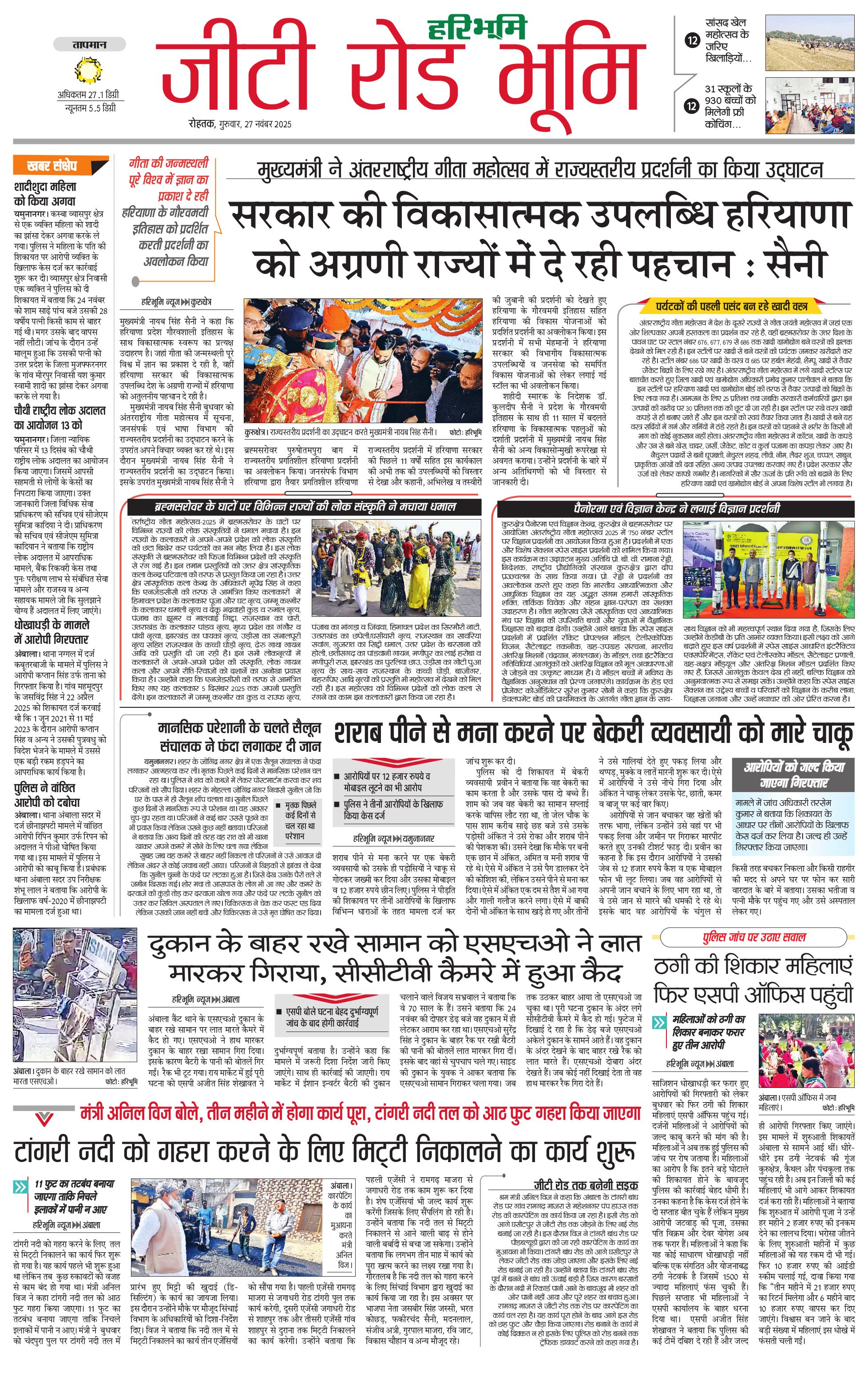कुरुक्षेत्र - 27 Nov 2025 - - Page 1