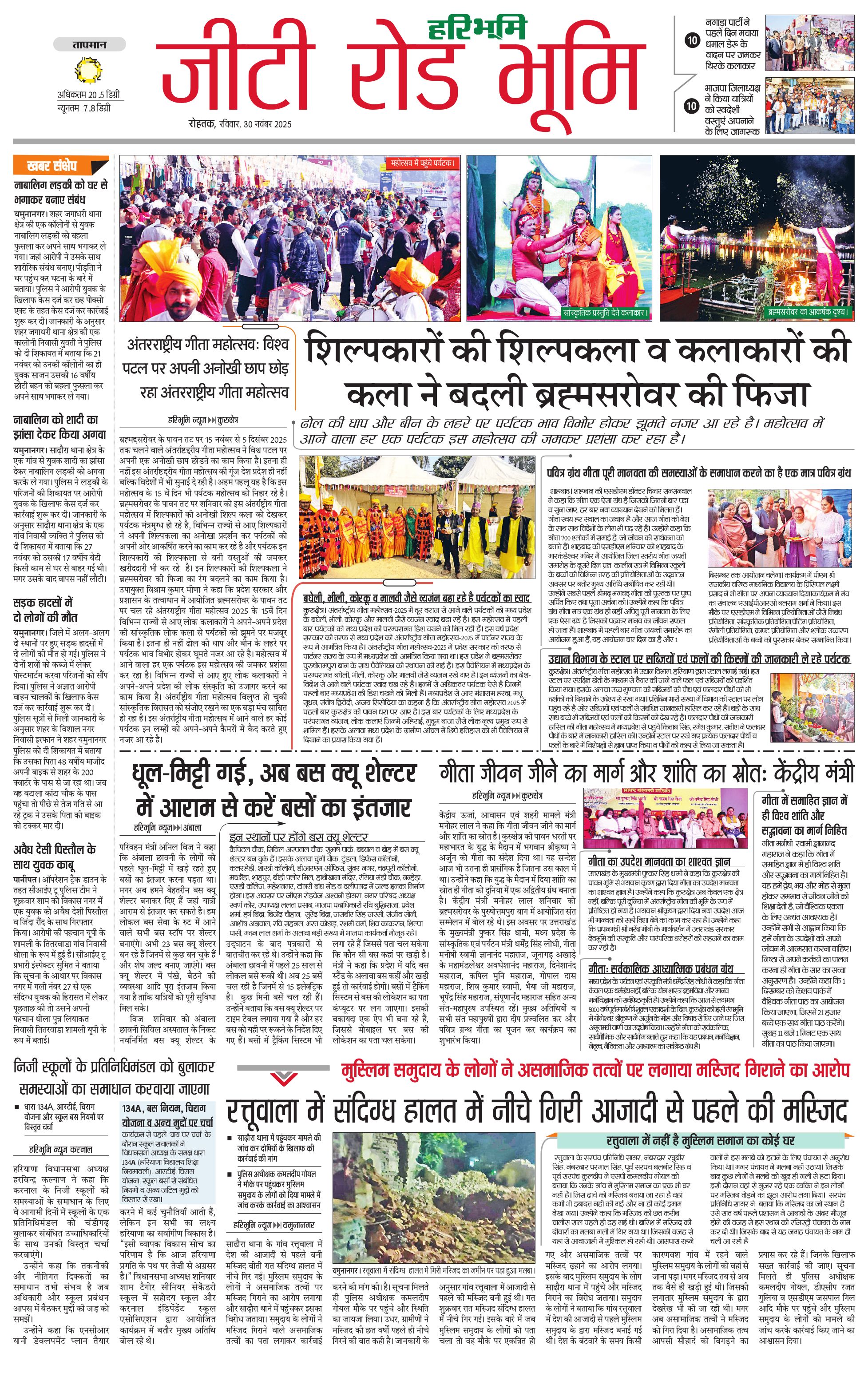 कुरुक्षेत्र - 30 Nov 2025 - - Page 1