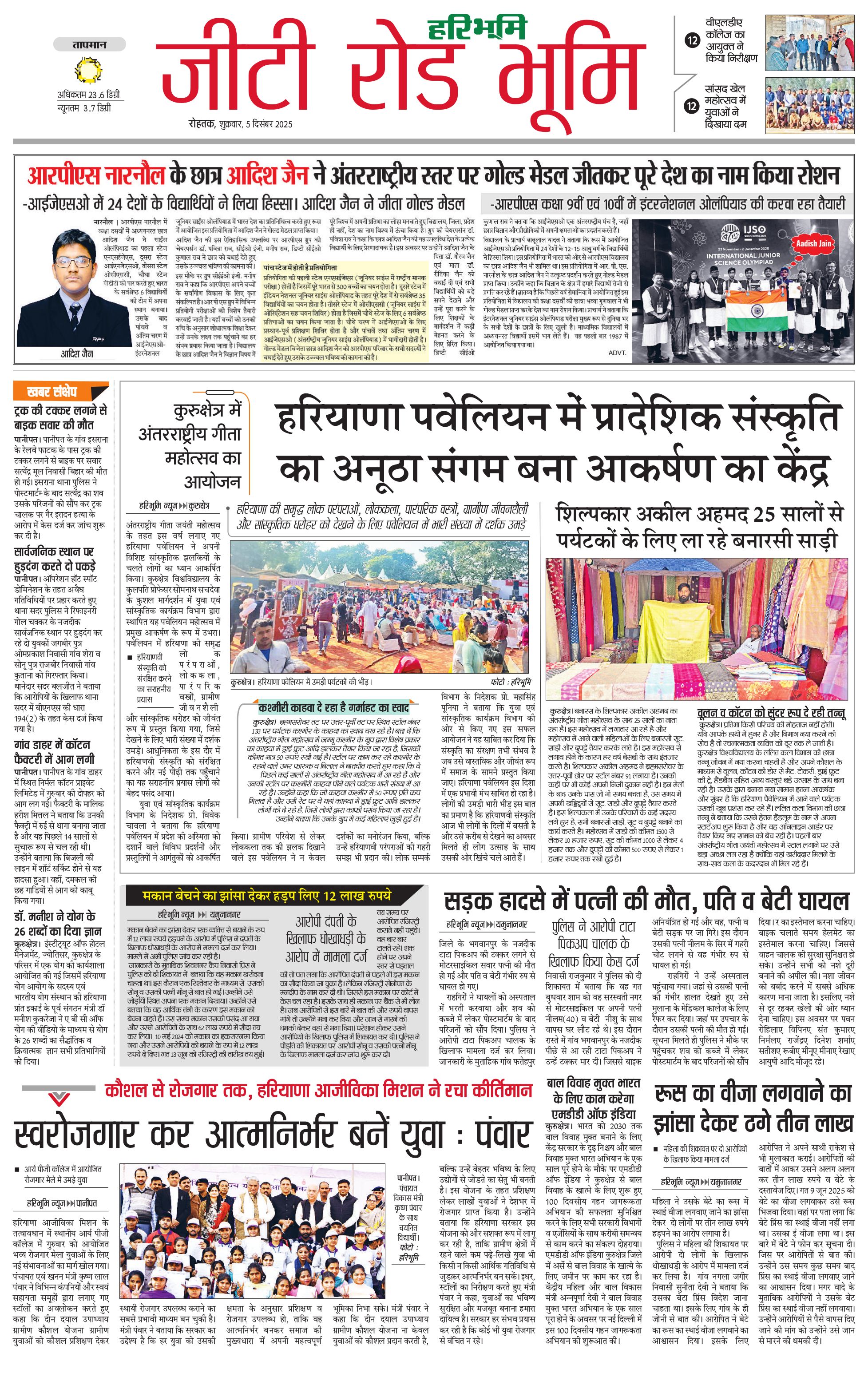 कुरुक्षेत्र - 05 Dec 2025 - - Page 1