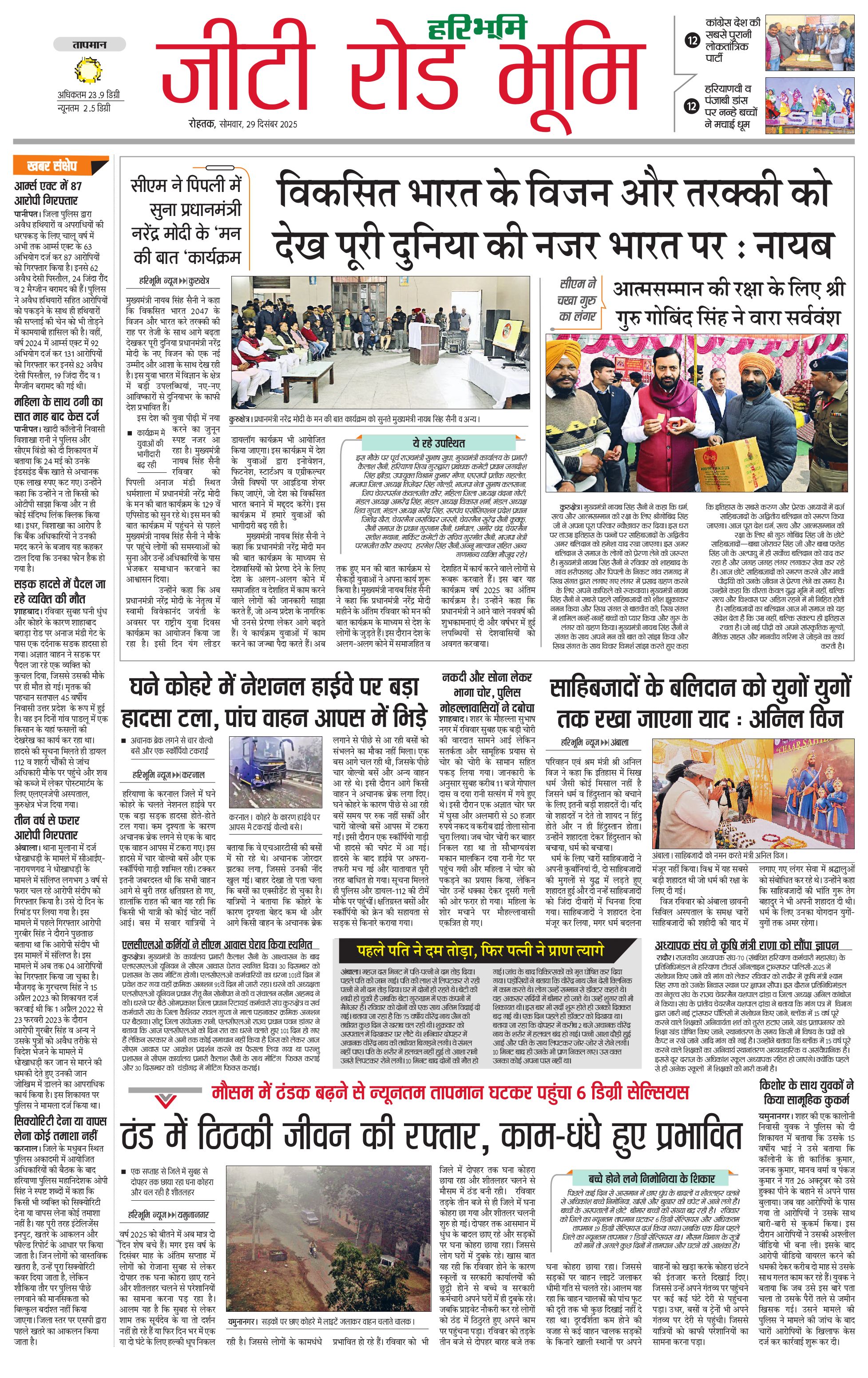 कुरुक्षेत्र - 29 Dec 2025 - - Page 1