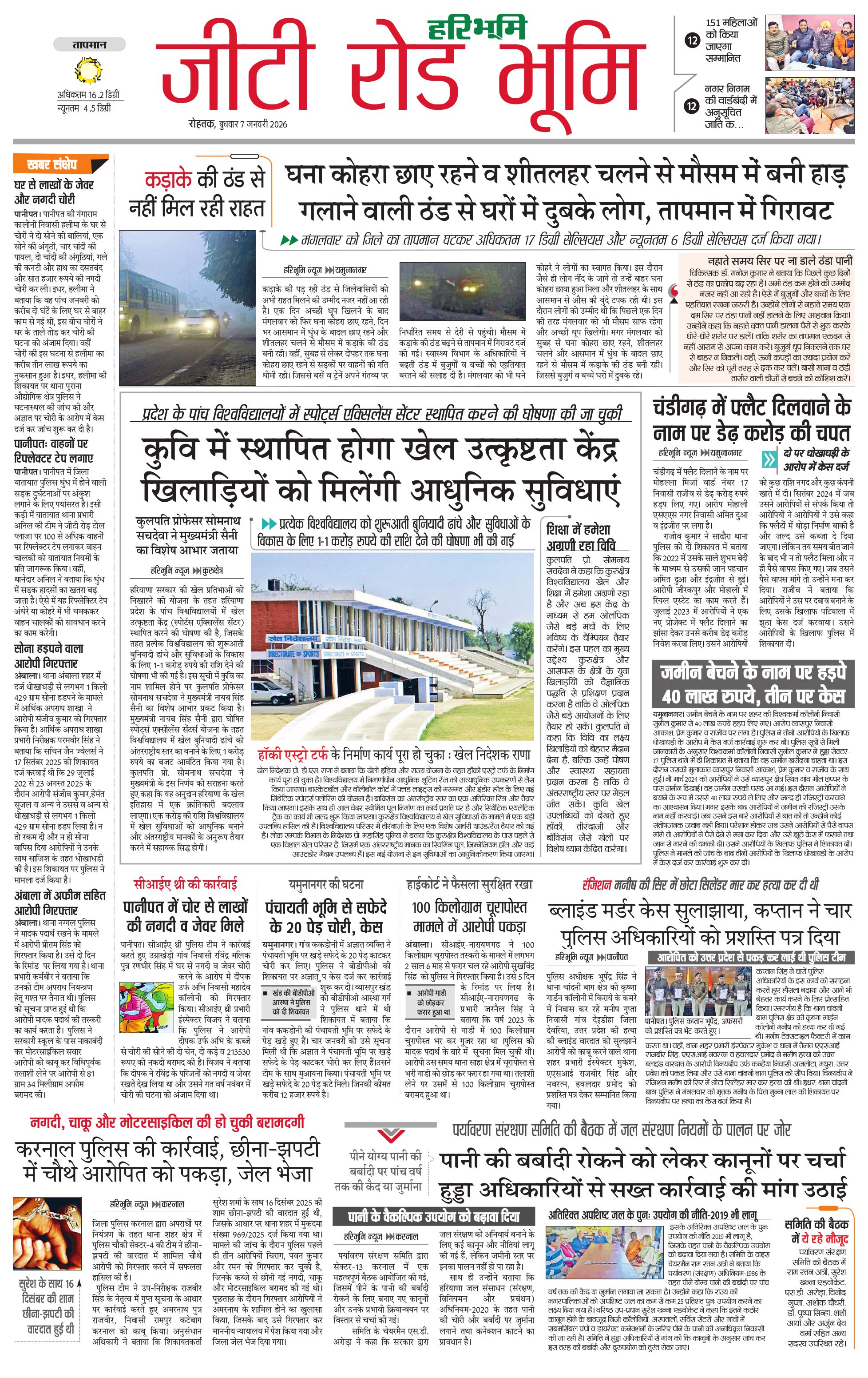 कुरुक्षेत्र - 07 Jan 2026 - - Page 1