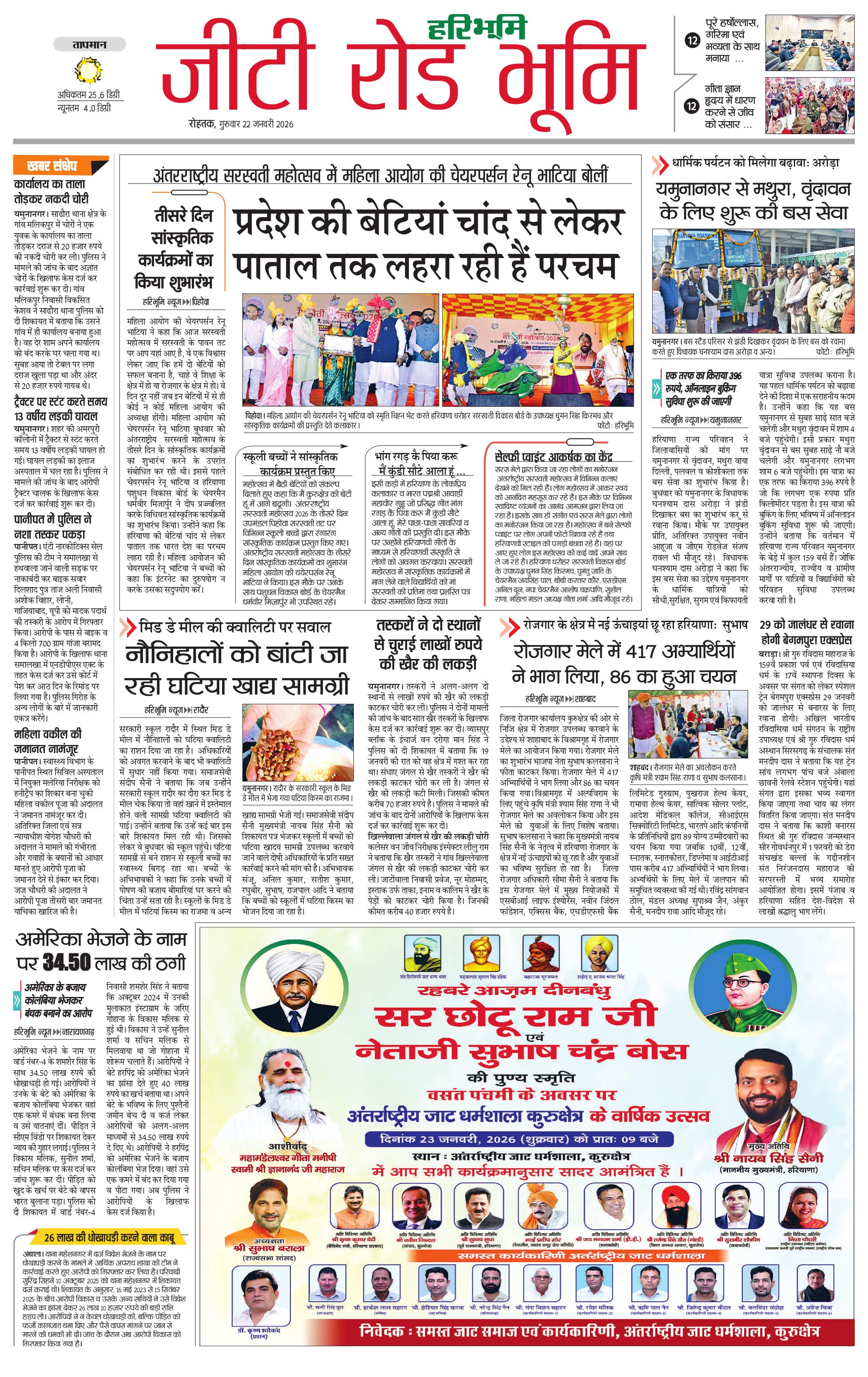 कुरुक्षेत्र - 22 Jan 2026 - - Page 1