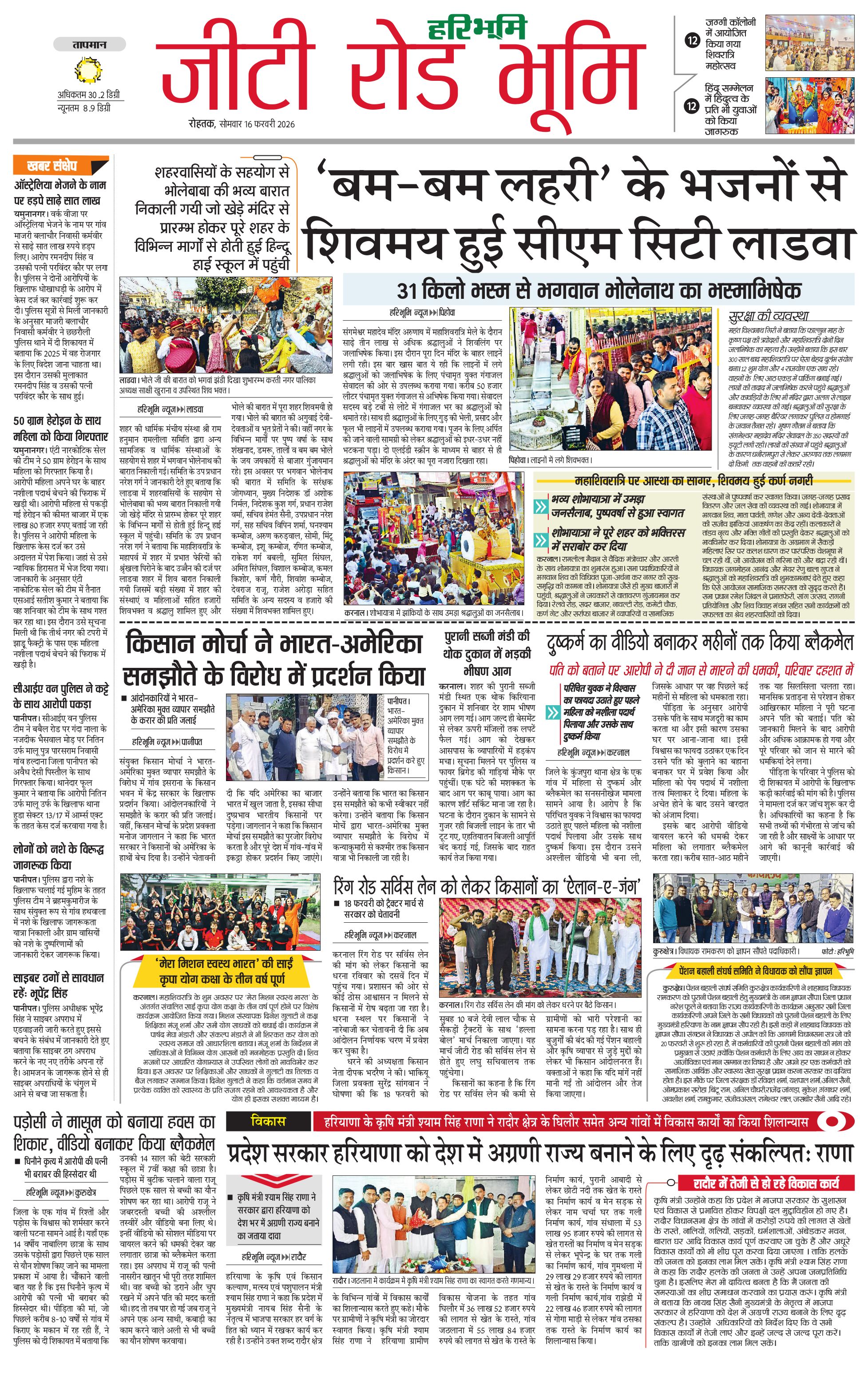 कुरुक्षेत्र - 16 Feb 2026 - - Page 1