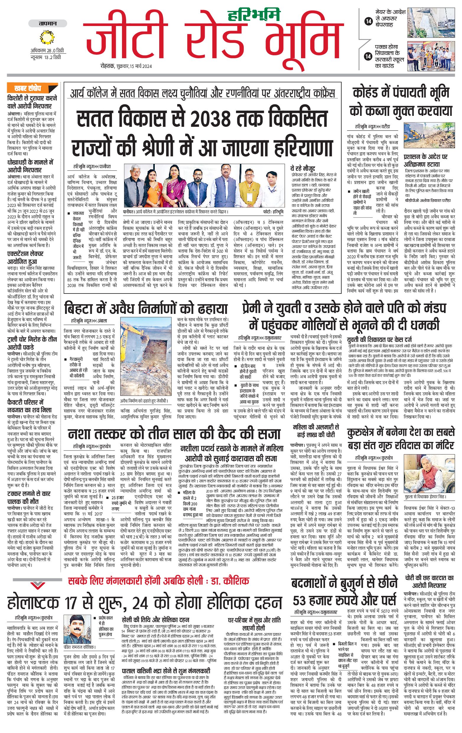 कुरुक्षेत्र - 15 Mar 2024 - - Page 1