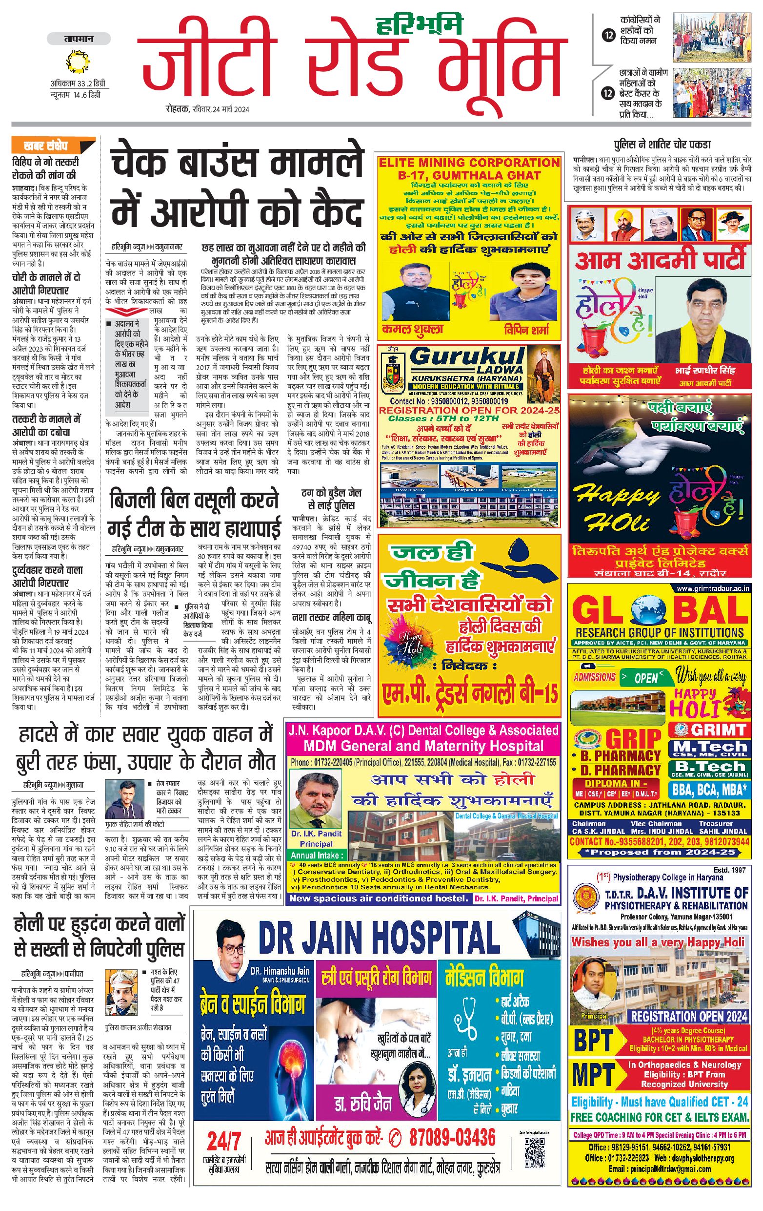 कुरुक्षेत्र - 24 Mar 2024 - - Page 1