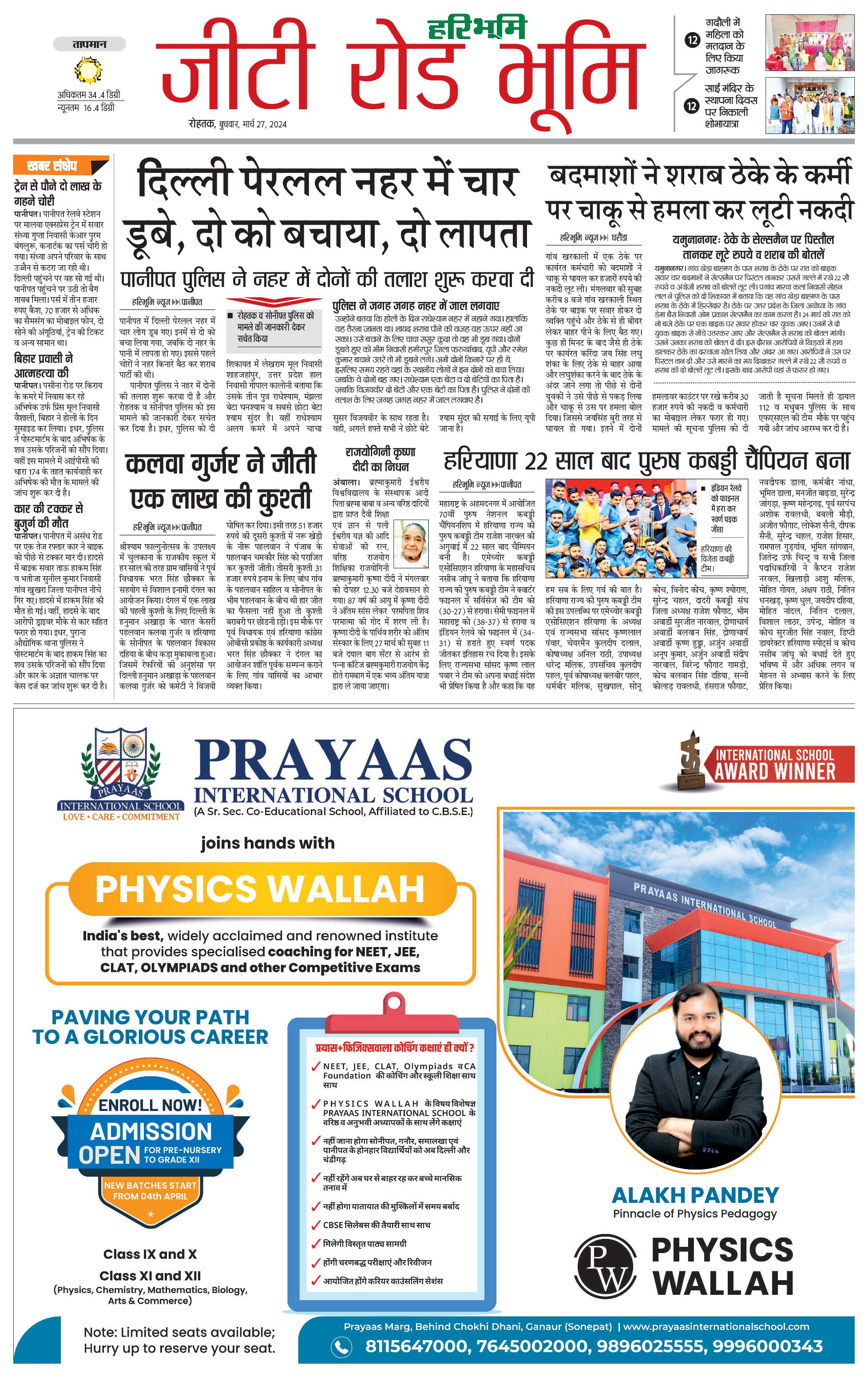 कुरुक्षेत्र - 27 Mar 2024 - - Page 1