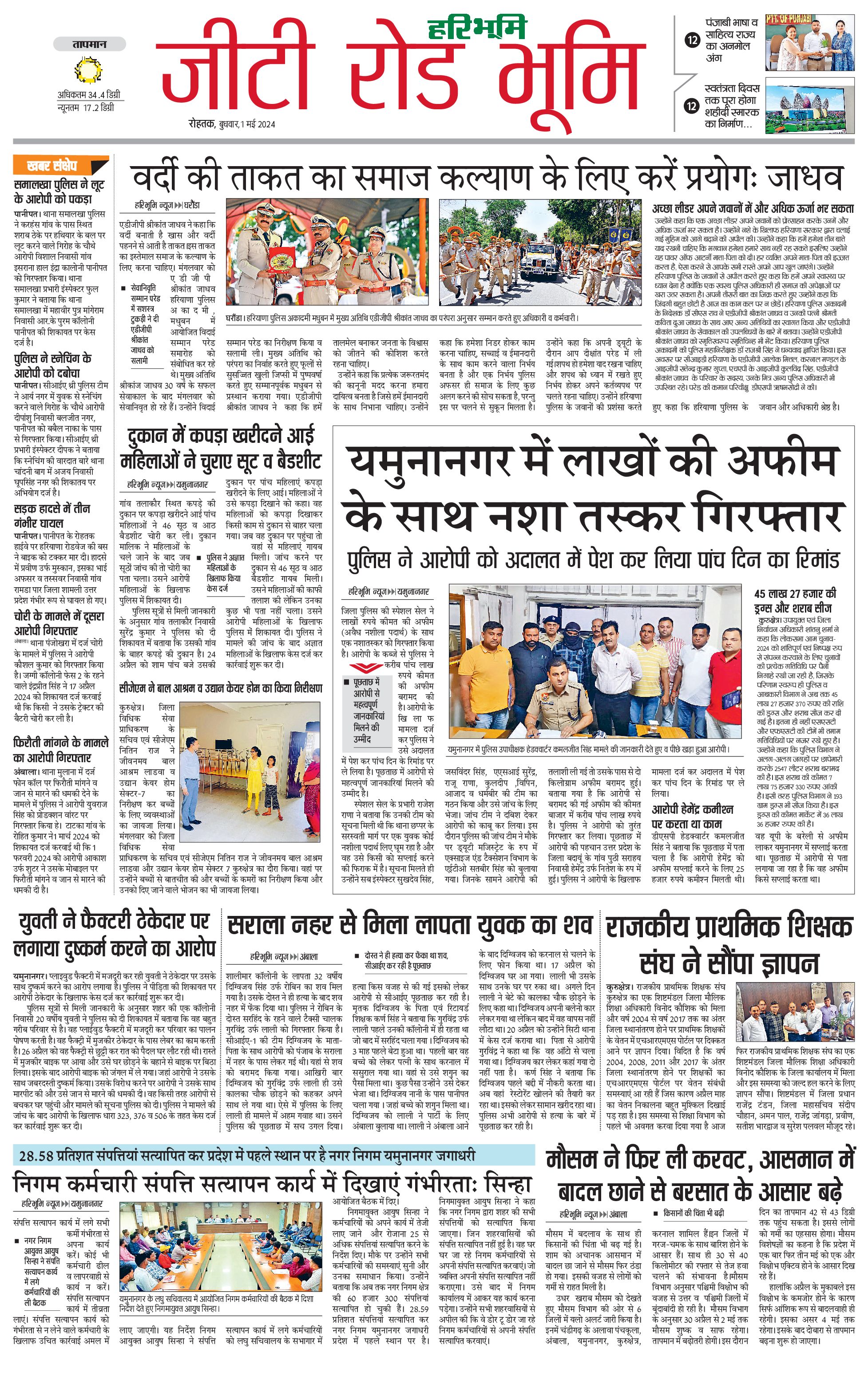कुरुक्षेत्र - 01 May 2024 - - Page 1