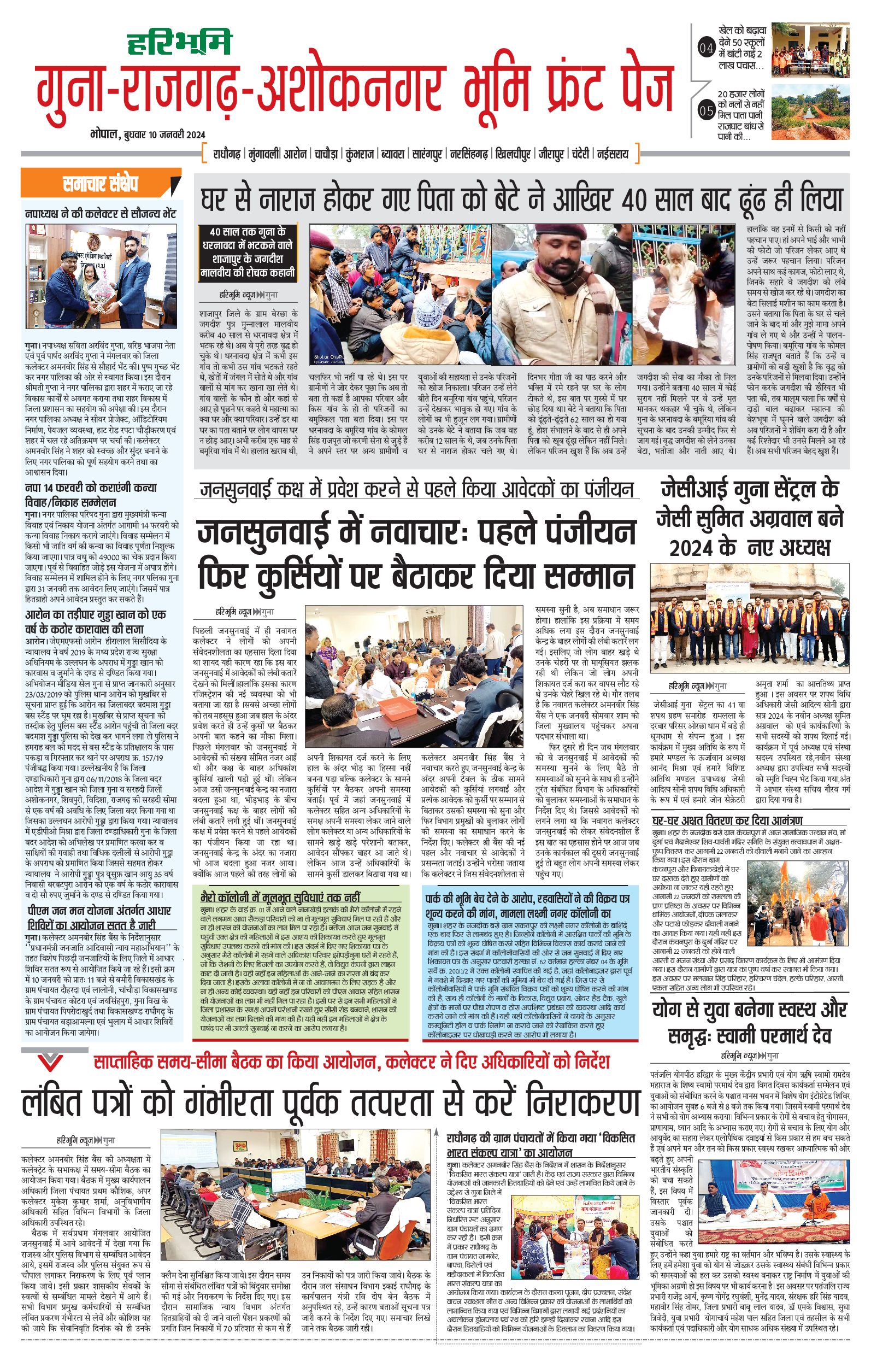 गुना-राजगढ़-अशोकनगर भूमि - 10 Jan 2024 - - Page 1