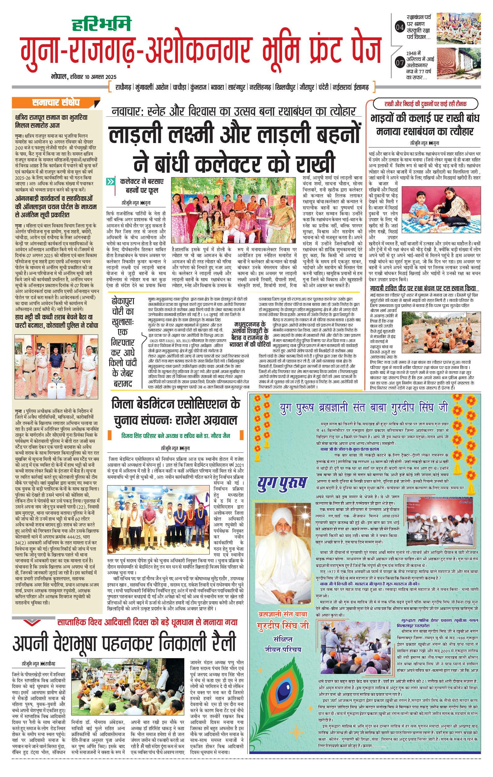 गुना-राजगढ़-अशोकनगर भूमि - 10 Aug 2025 - - Page 1