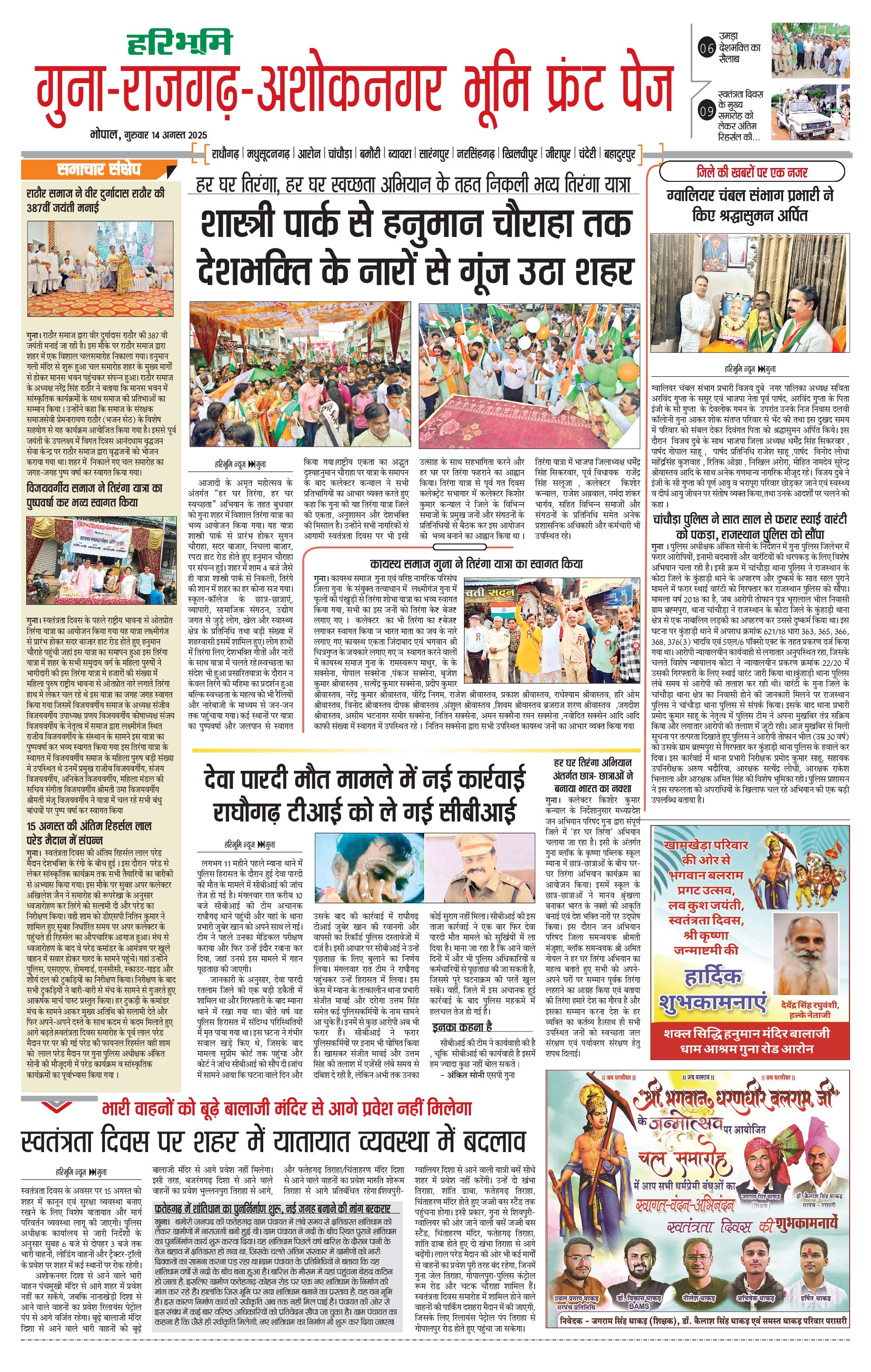 गुना-राजगढ़-अशोकनगर भूमि - 14 Aug 2025 - - Page 1