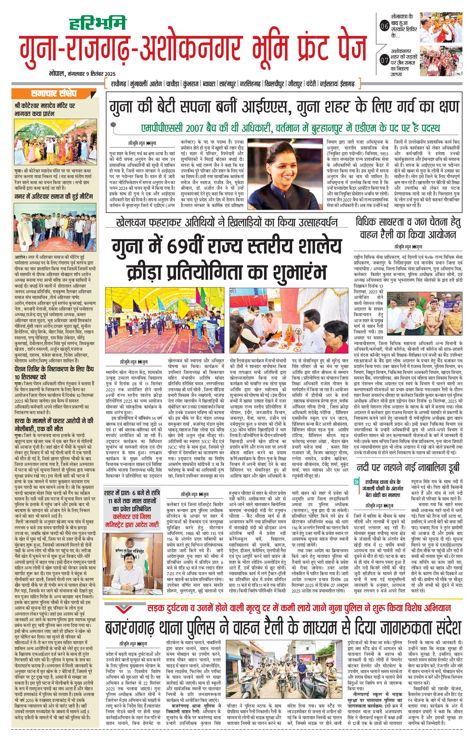 गुना-राजगढ़-अशोकनगर भूमि - 09 Sep 2025 - - Page 1
