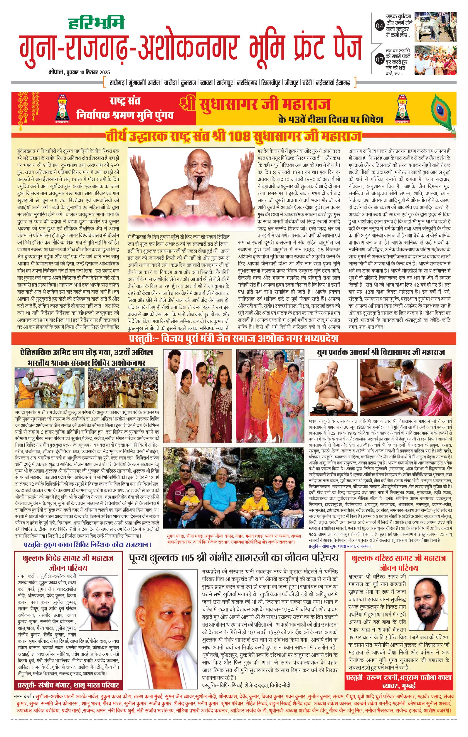 गुना-राजगढ़-अशोकनगर भूमि - 10 Sep 2025 - - Page 1