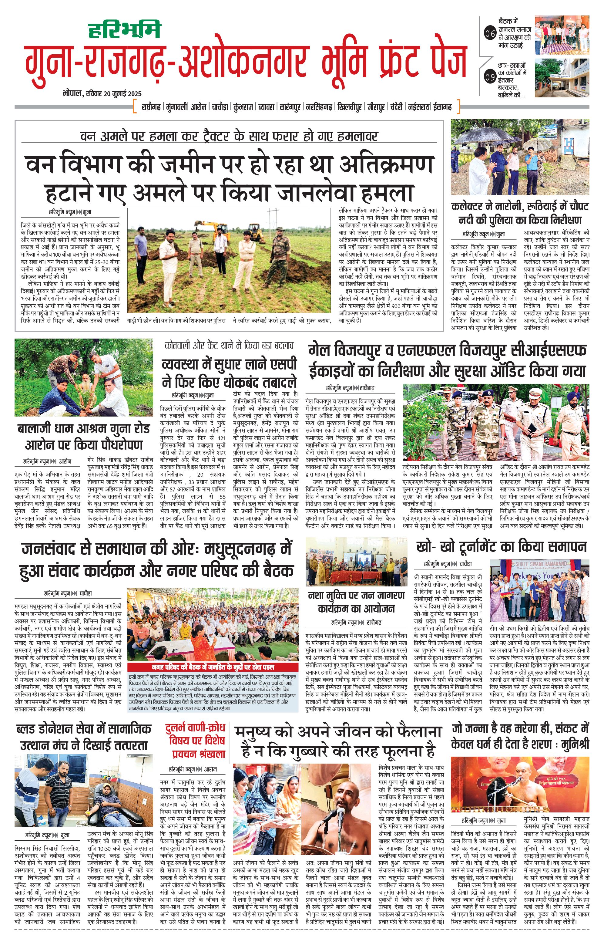 गुना-राजगढ़-अशोकनगर भूमि - 20 Jul 2025 - - Page 1