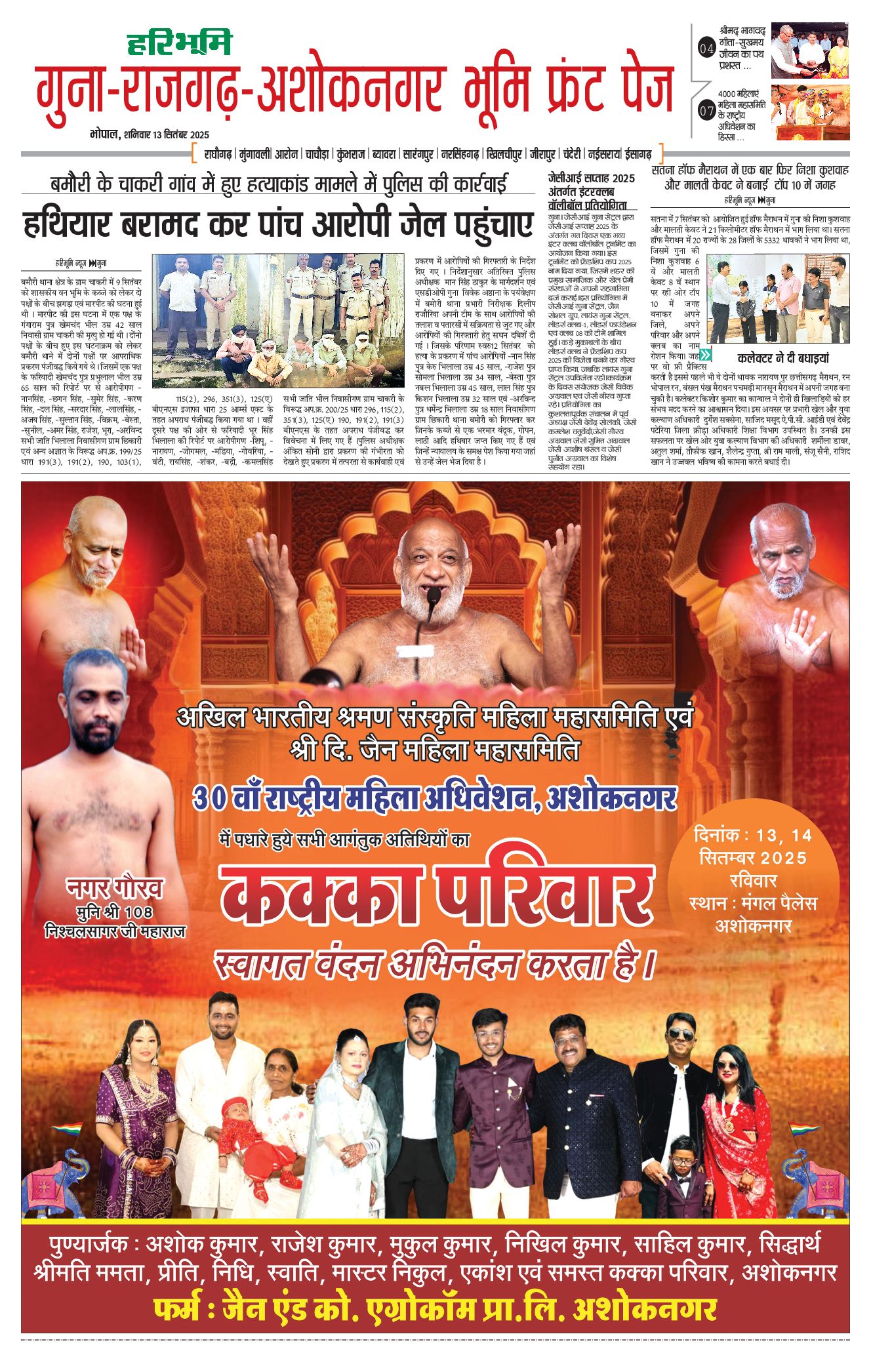 गुना-राजगढ़-अशोकनगर भूमि - 13 Sep 2025 - - Page 1