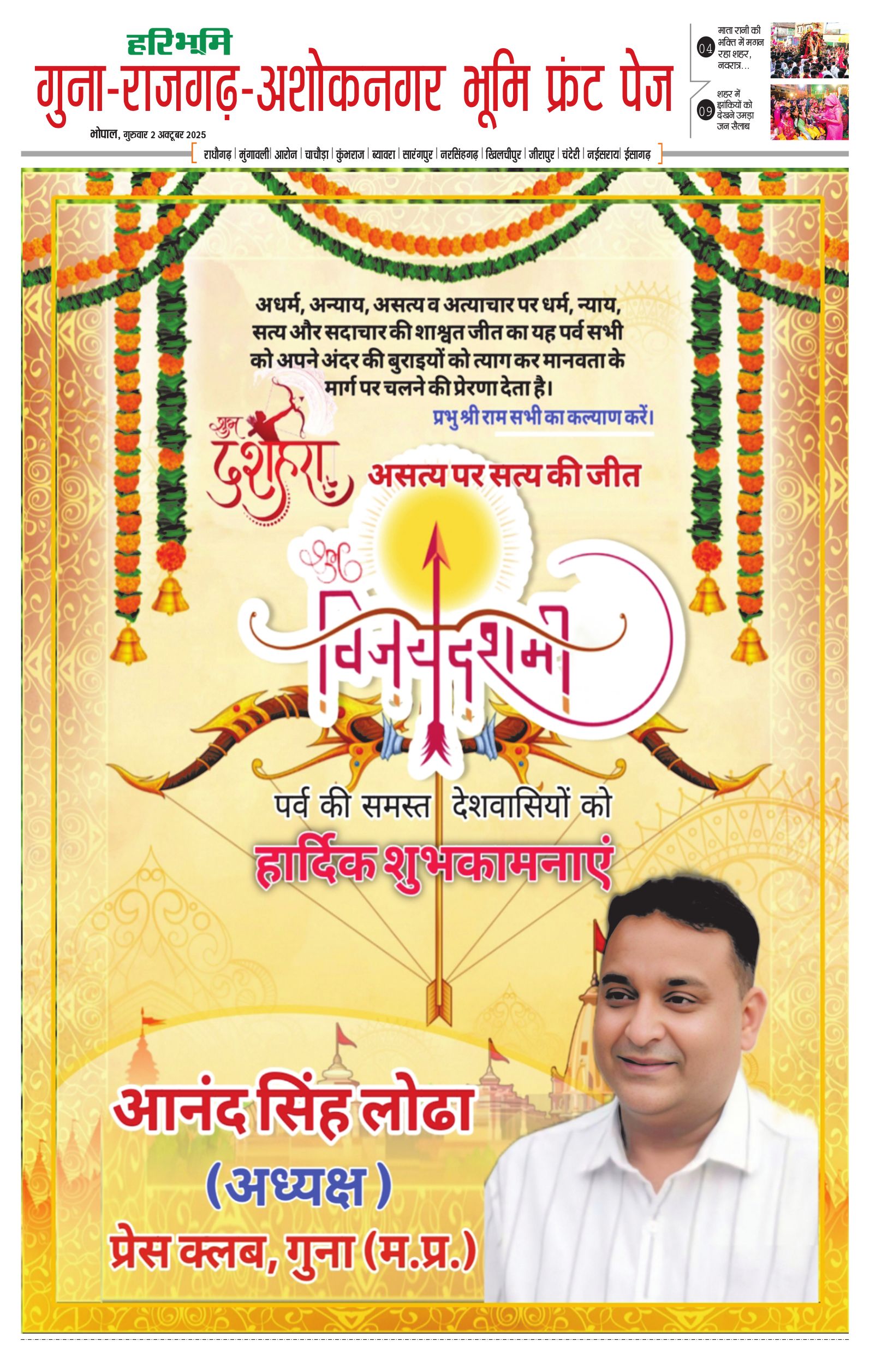 गुना-राजगढ़-अशोकनगर भूमि - 02 Oct 2025 - - Page 1