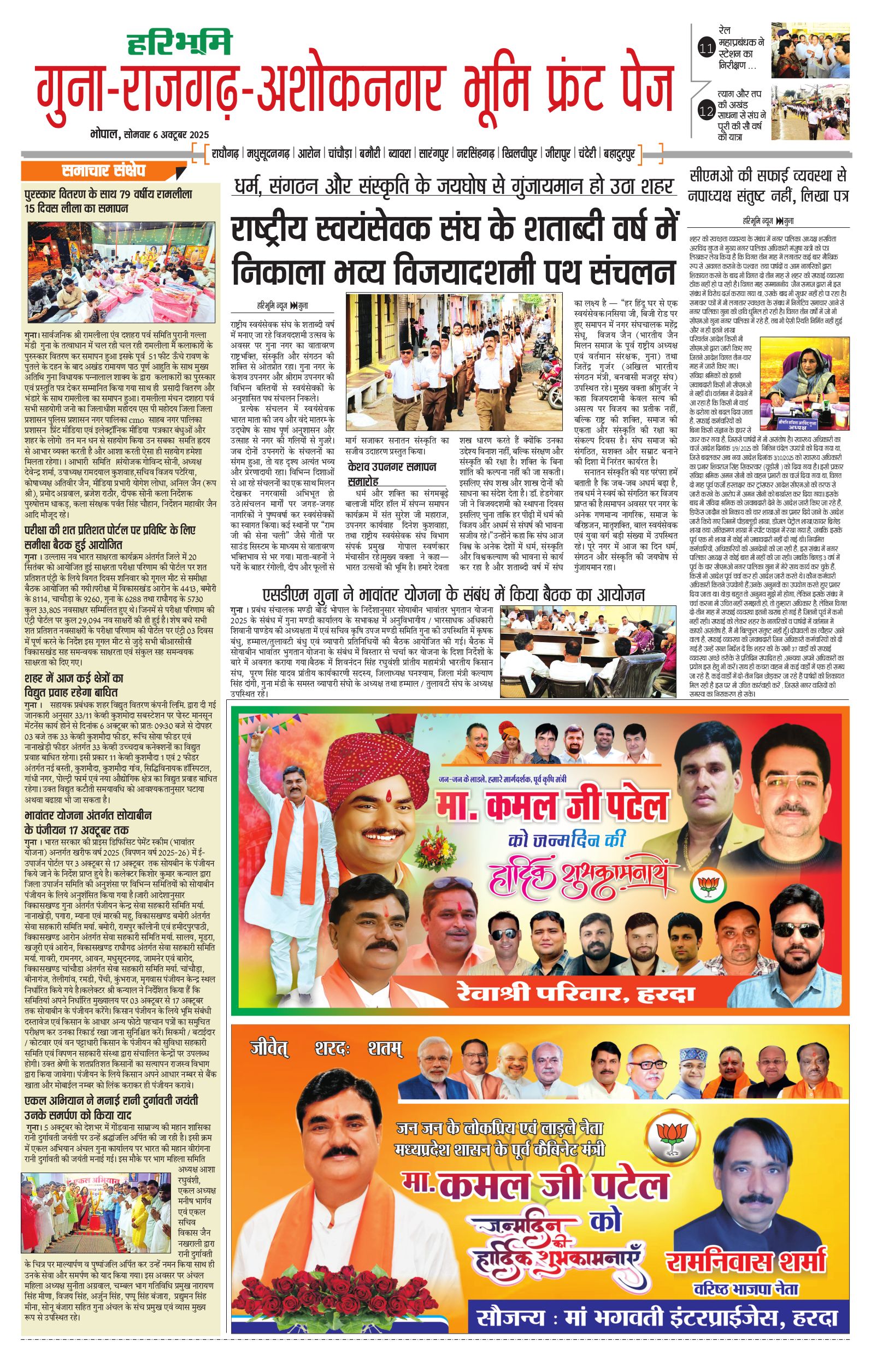 गुना-राजगढ़-अशोकनगर भूमि - 06 Oct 2025 - - Page 1