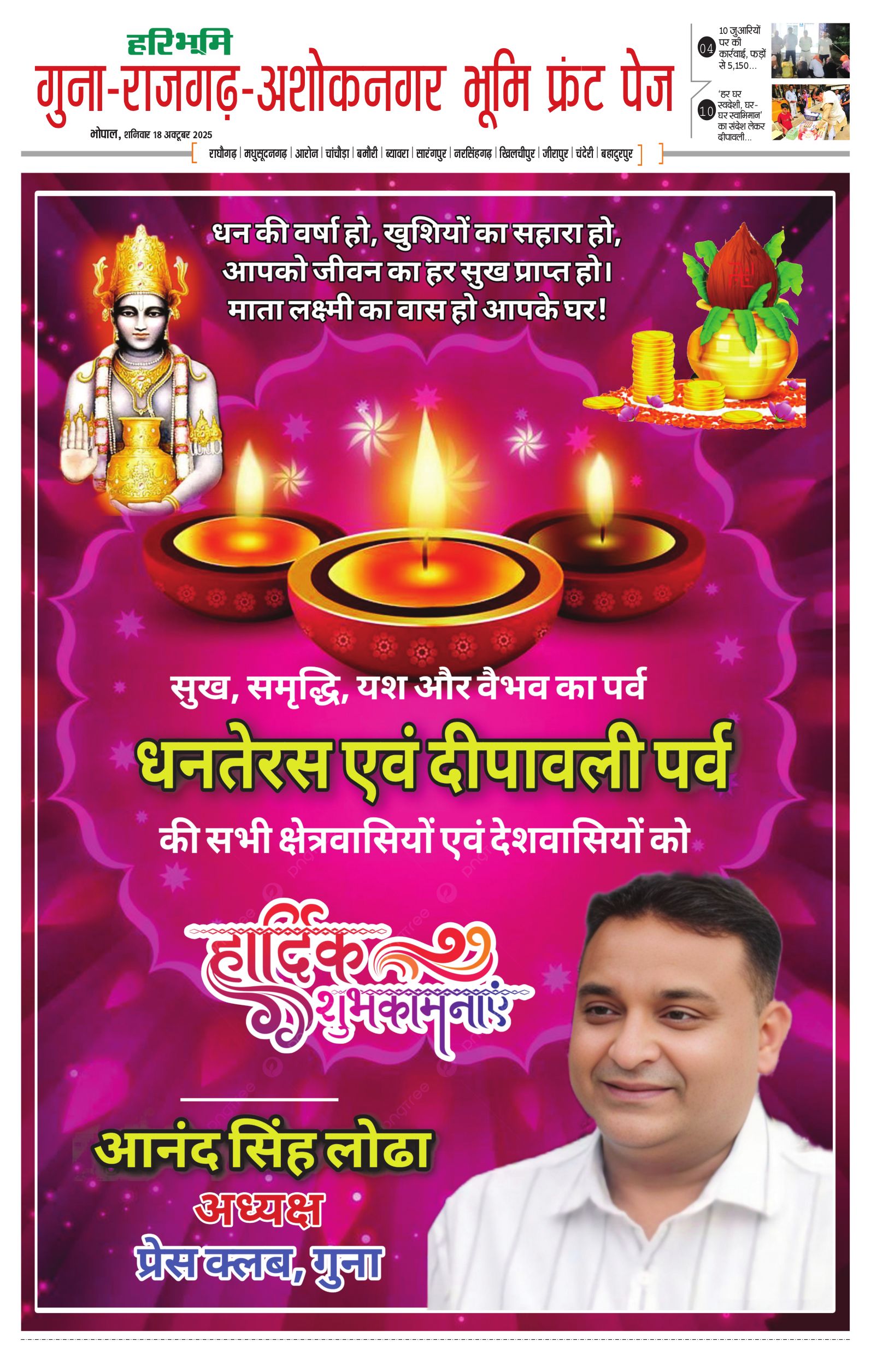 गुना-राजगढ़-अशोकनगर भूमि - 18 Oct 2025 - - Page 1