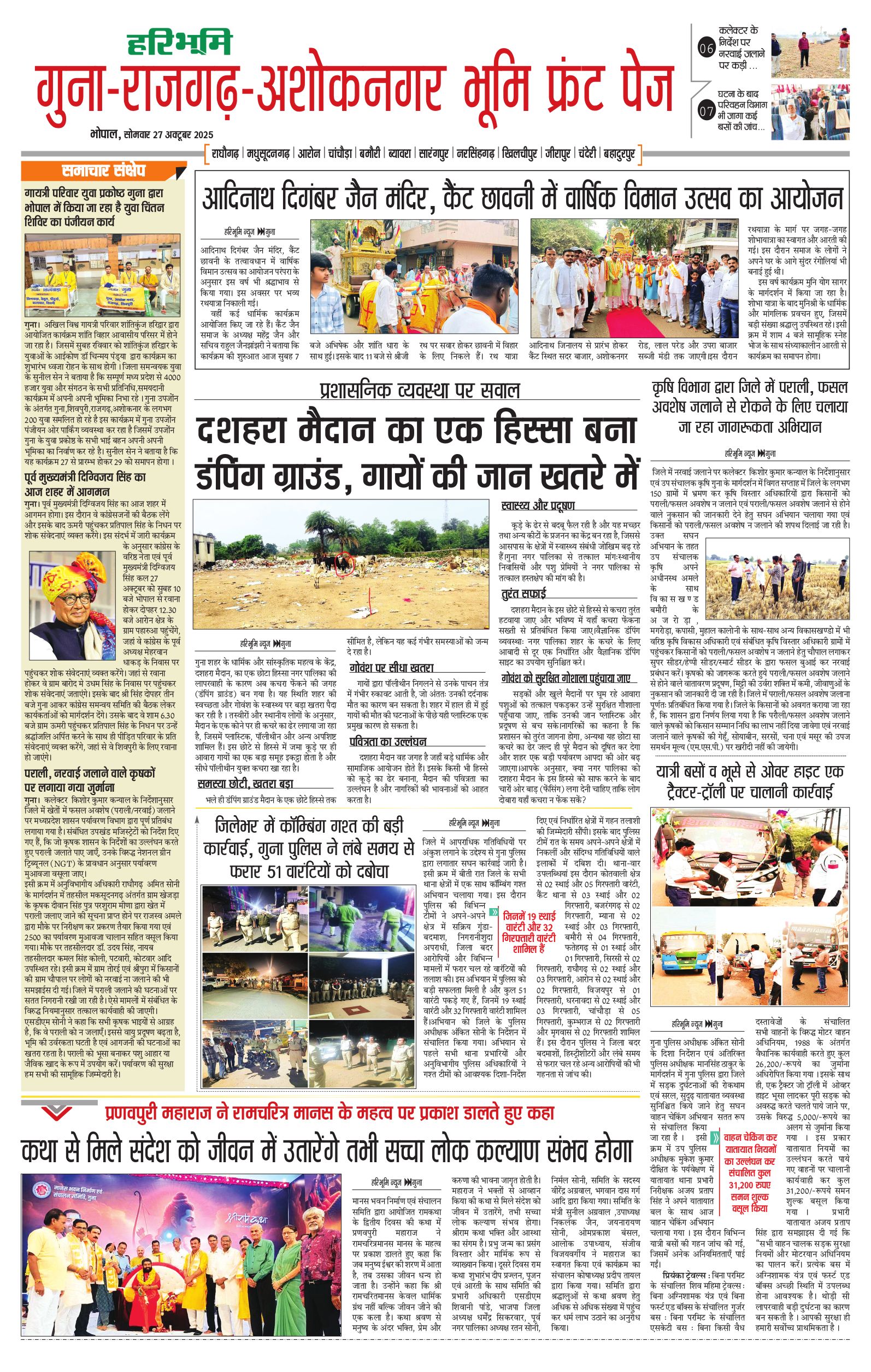 गुना-राजगढ़-अशोकनगर भूमि - 27 Oct 2025 - - Page 1