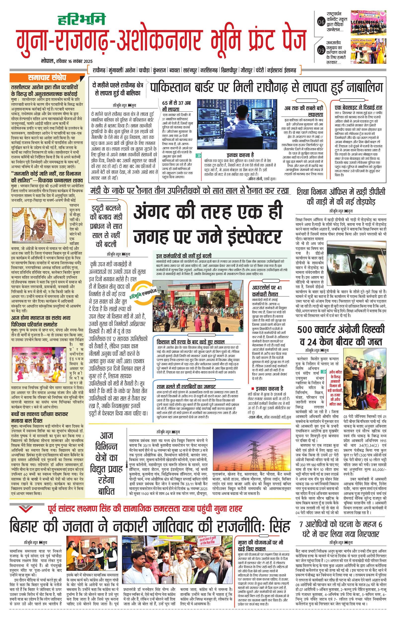 गुना-राजगढ़-अशोकनगर भूमि - 16 Nov 2025 - - Page 1
