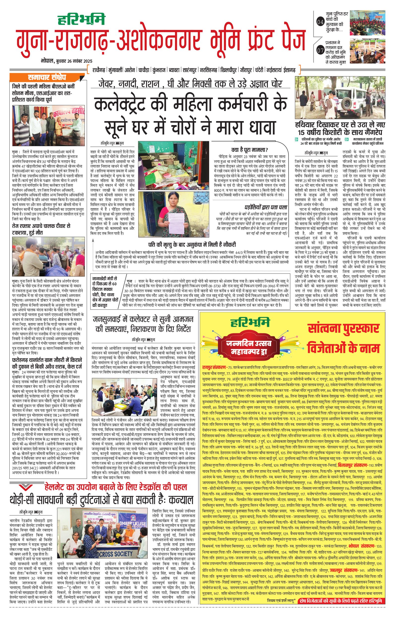 गुना-राजगढ़-अशोकनगर भूमि - 26 Nov 2025 - - Page 1