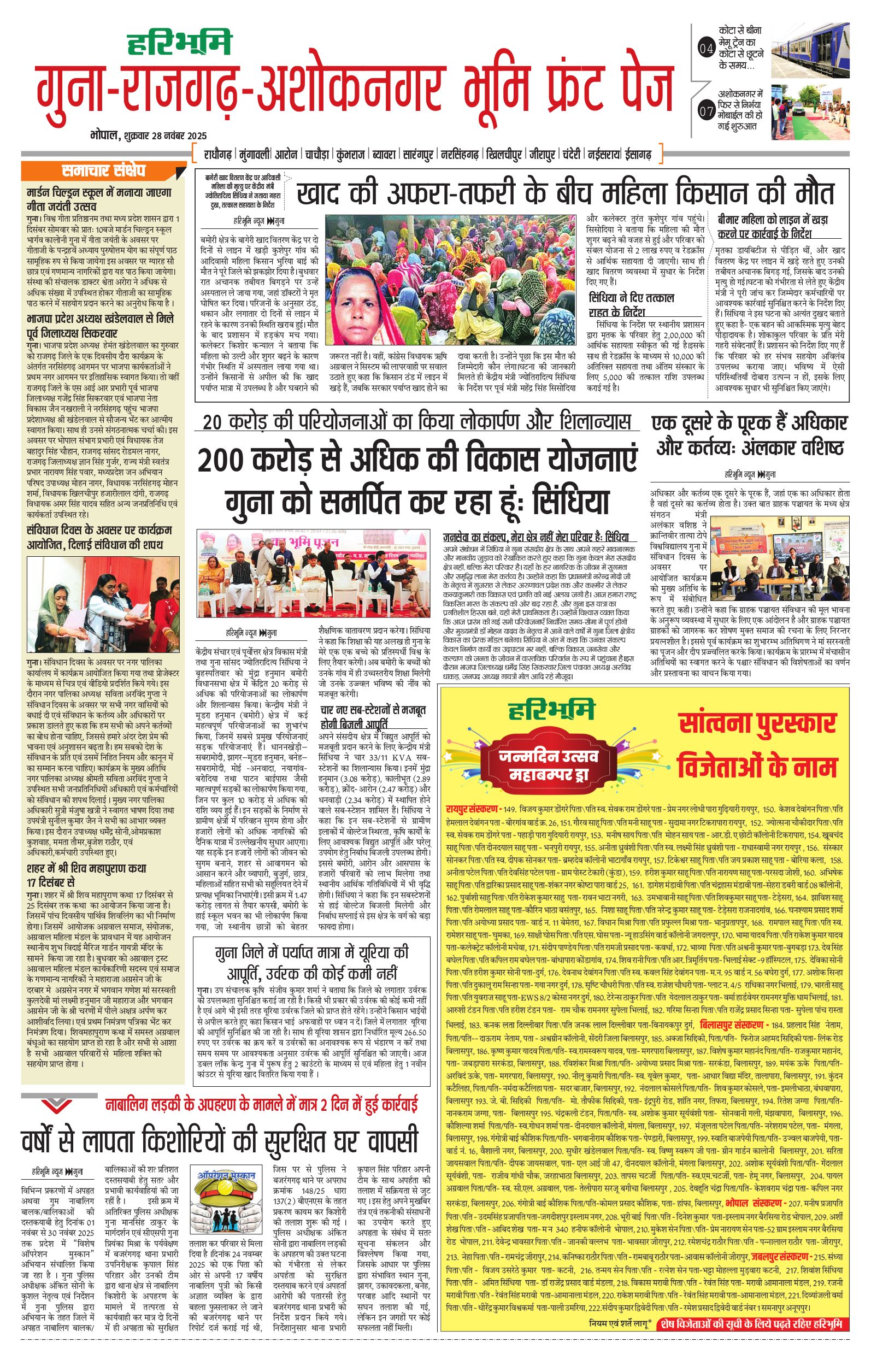 गुना-राजगढ़-अशोकनगर भूमि - 28 Nov 2025 - - Page 1