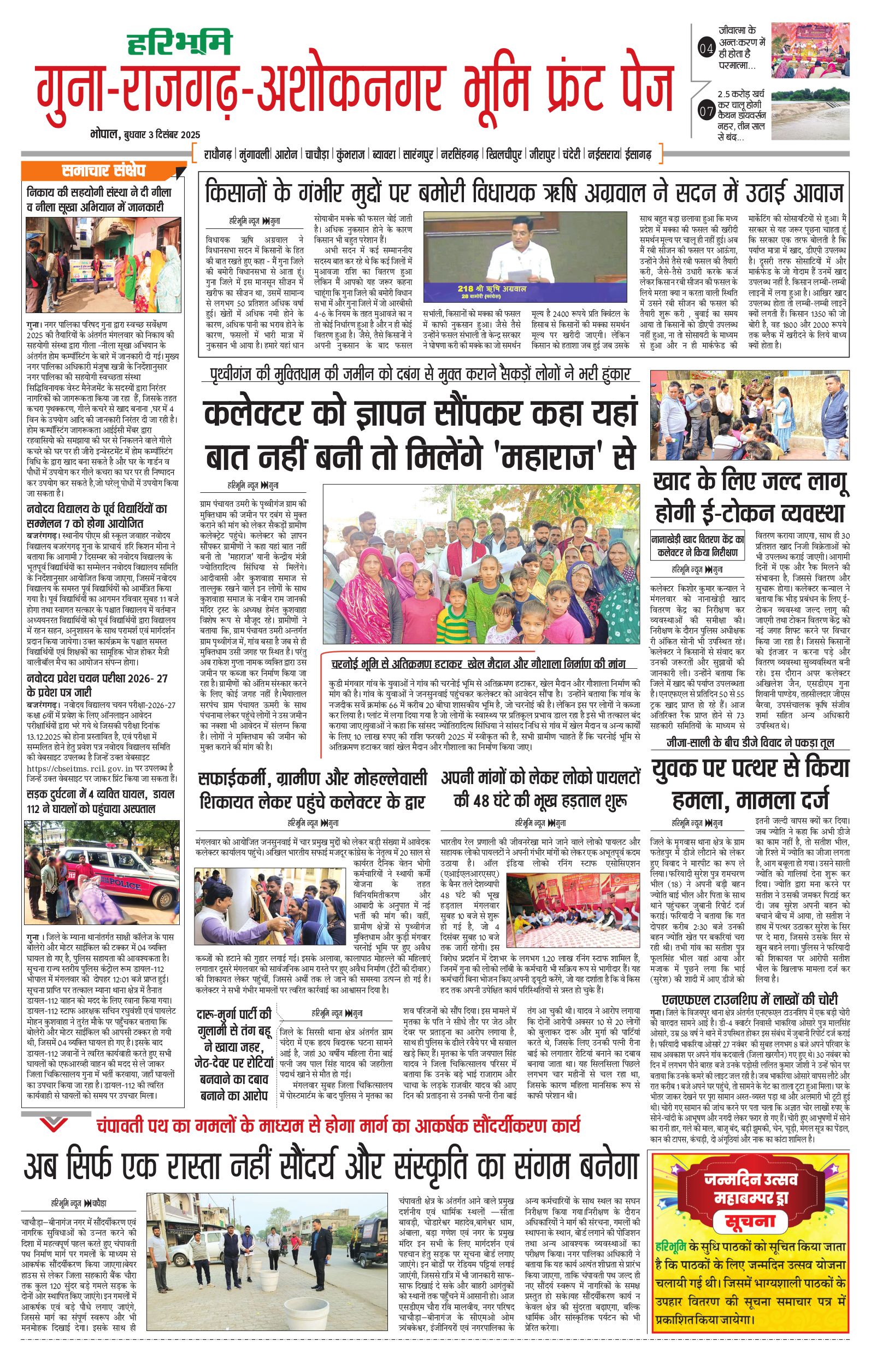गुना-राजगढ़-अशोकनगर भूमि - 03 Dec 2025 - - Page 1