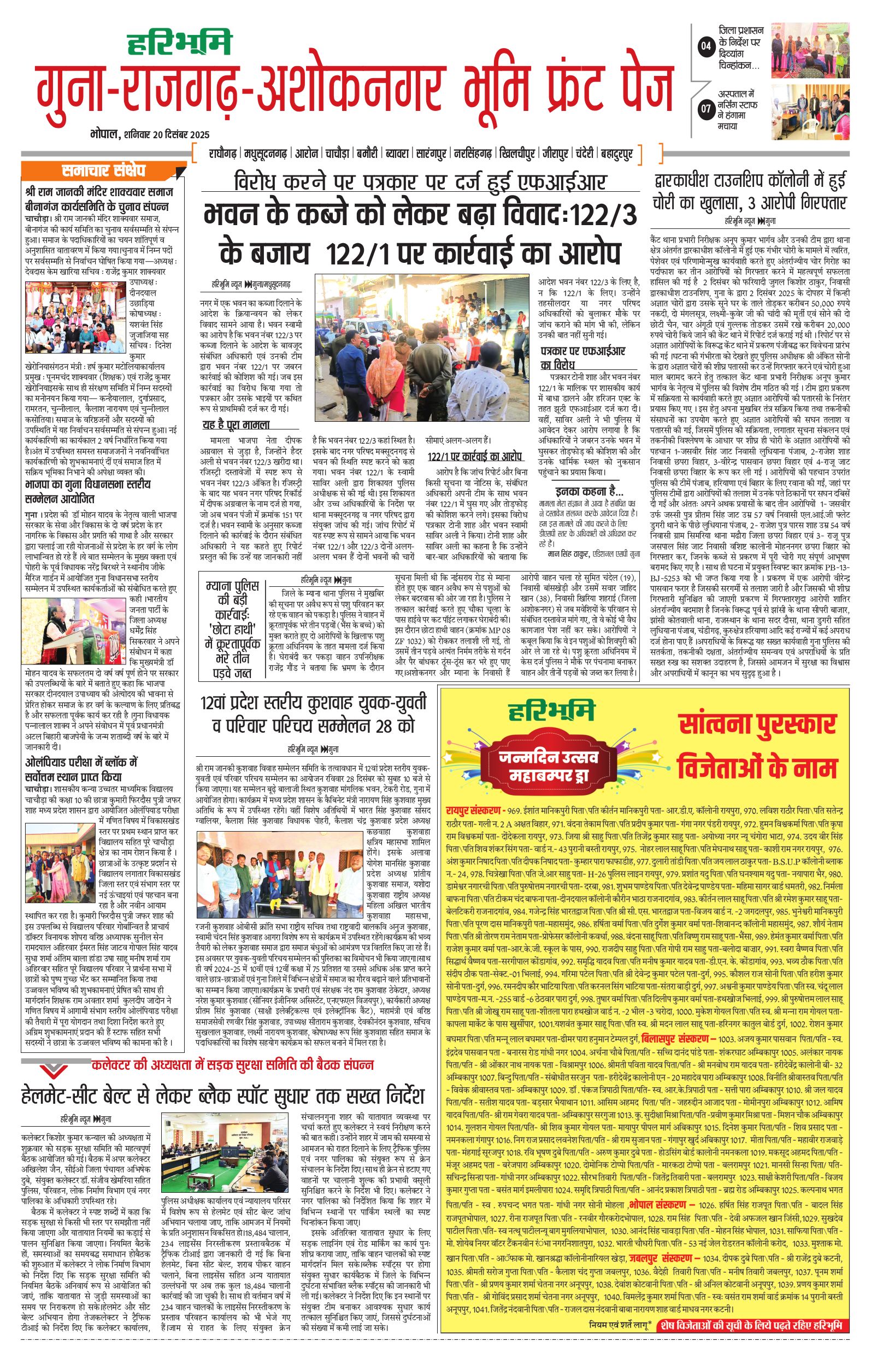 गुना-राजगढ़-अशोकनगर भूमि - 20 Dec 2025 - - Page 1