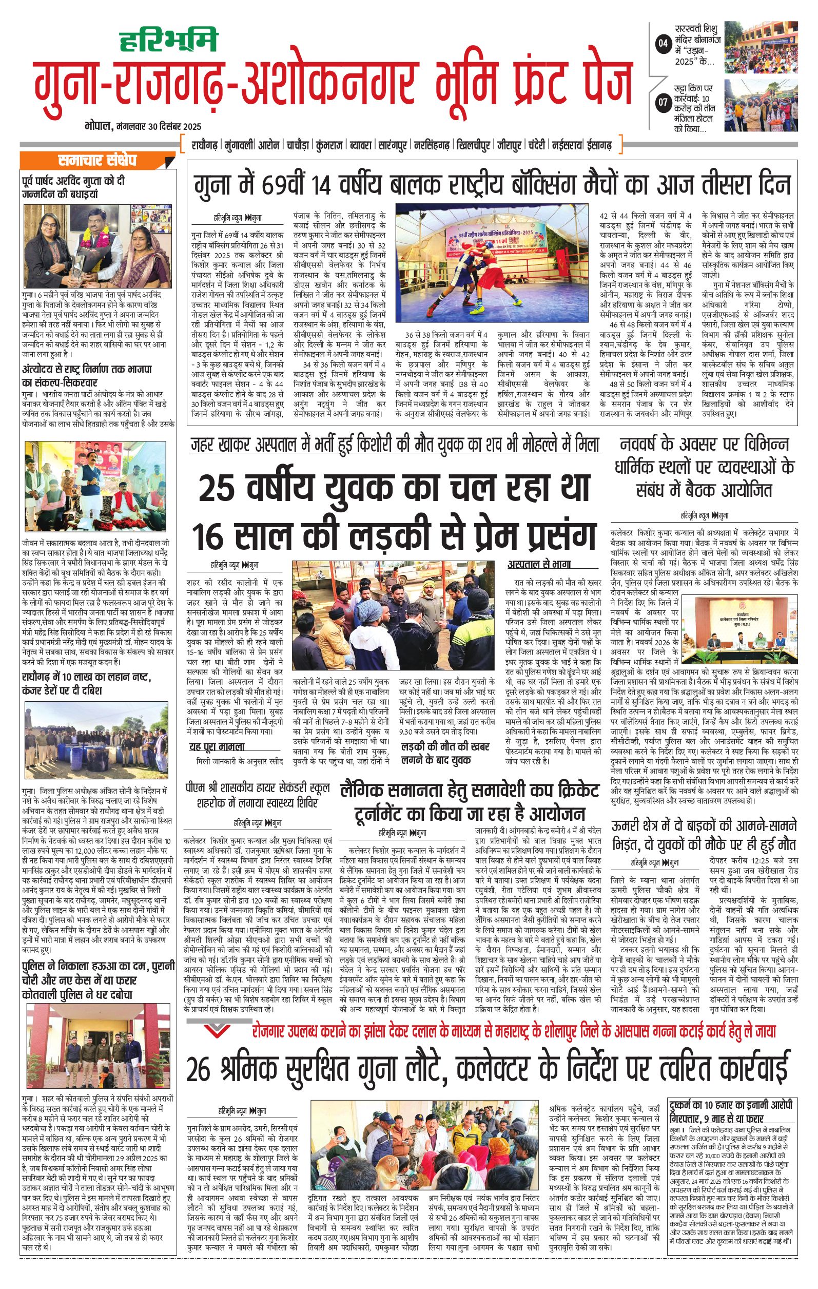 गुना-राजगढ़-अशोकनगर भूमि - 30 Dec 2025 - - Page 1