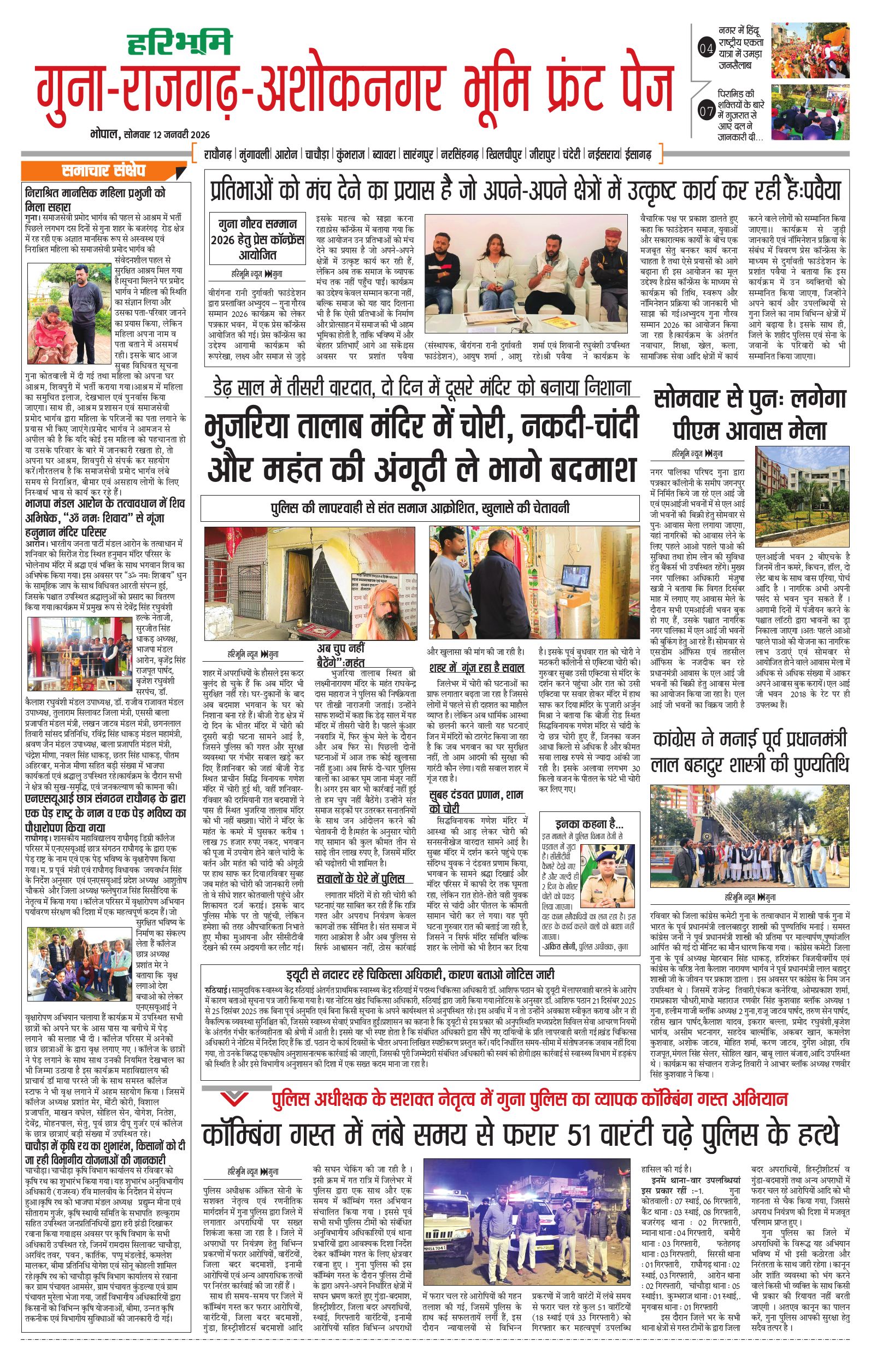 गुना-राजगढ़-अशोकनगर भूमि - 12 Jan 2026 - - Page 1