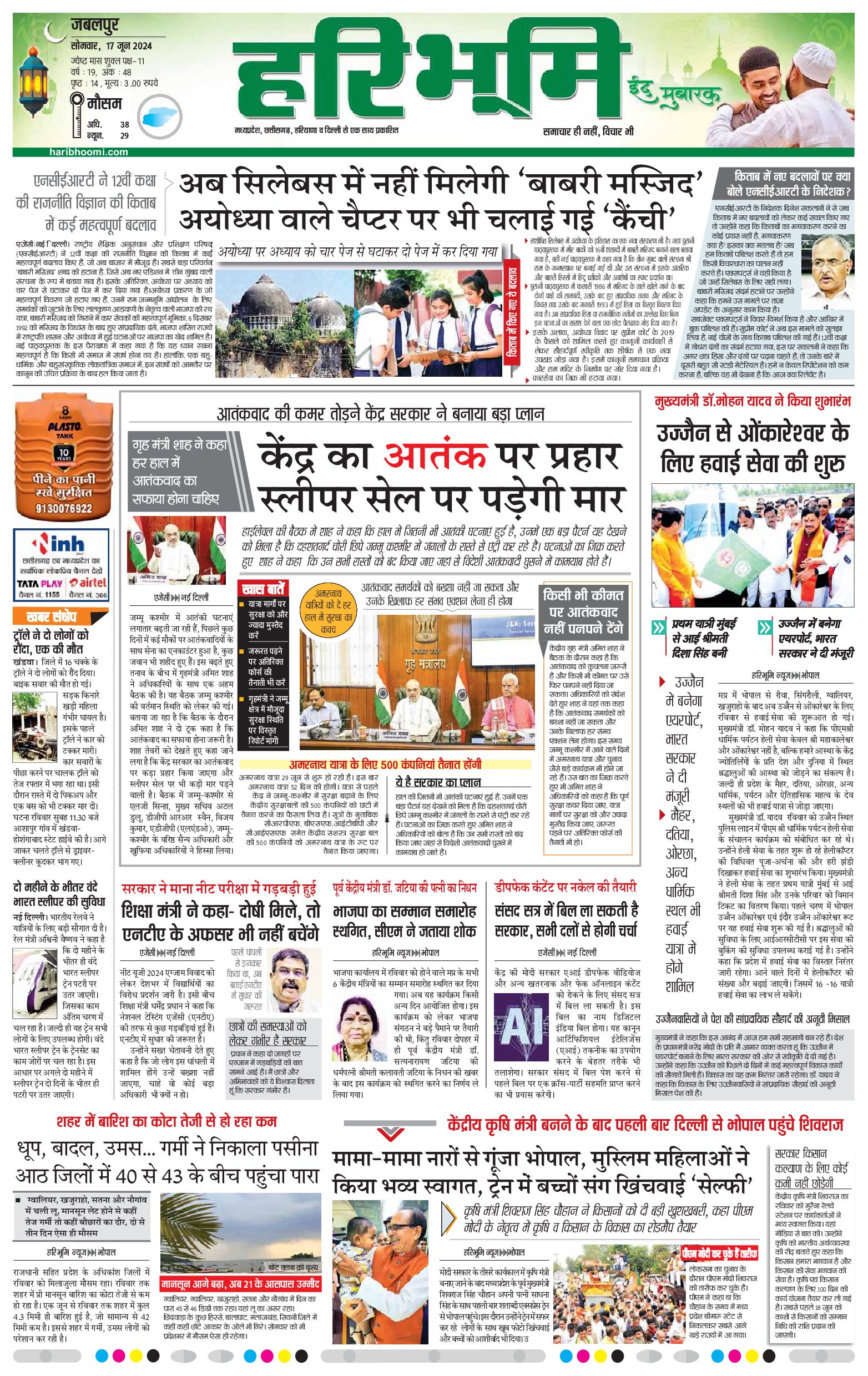 जबलपुर- मुख्य संस्करण - 17 Jun 2024 - - Page 1