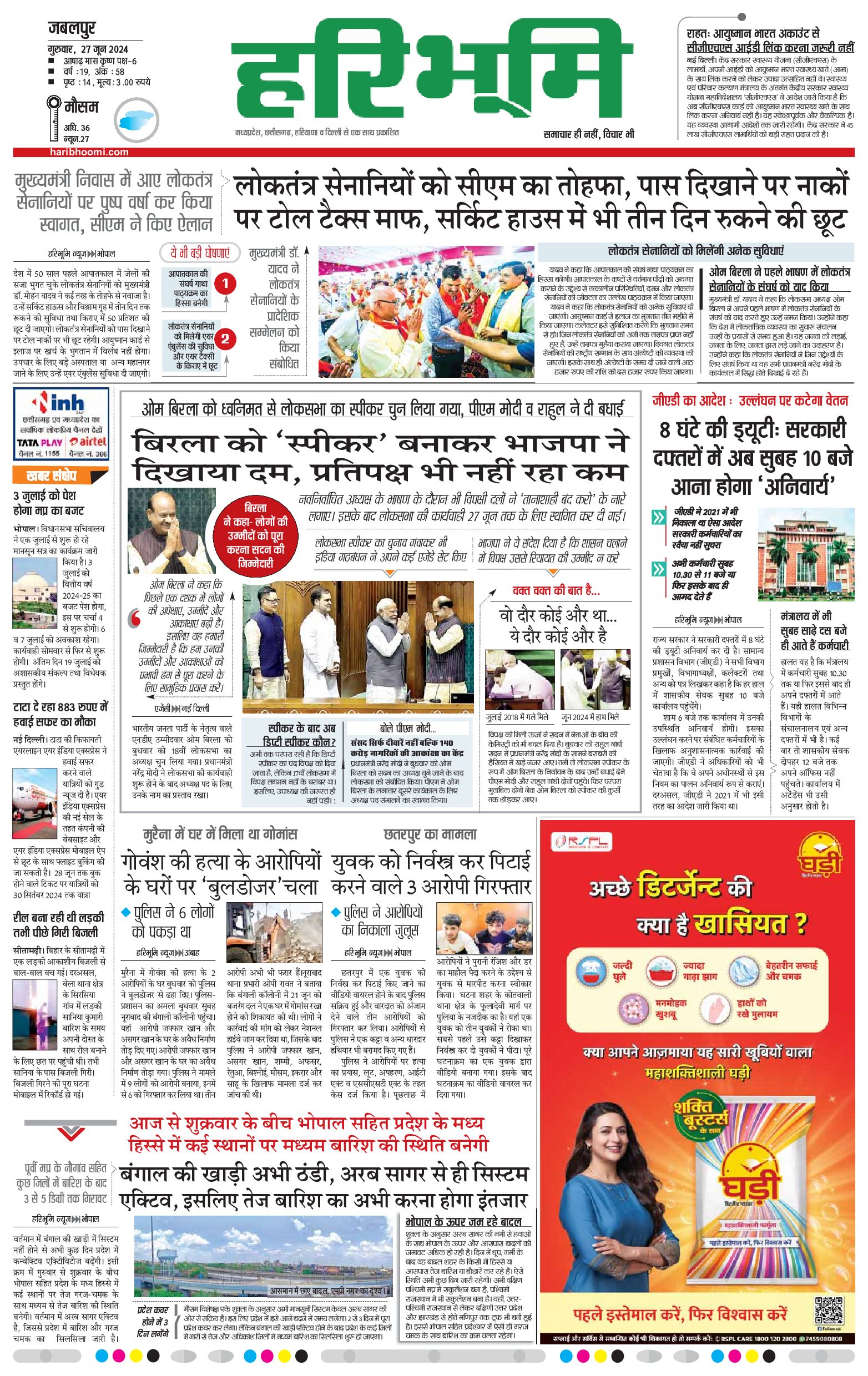 जबलपुर- मुख्य संस्करण - 27 Jun 2024 - - Page 1