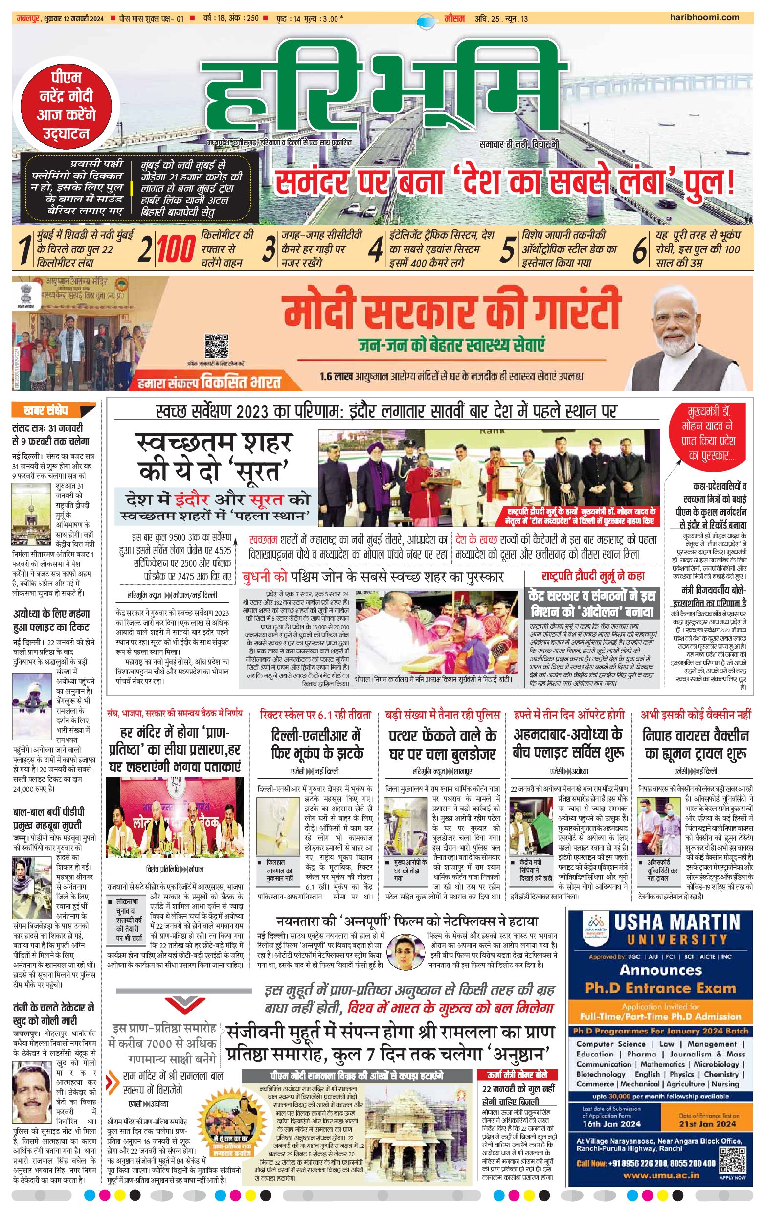 जबलपुर- मुख्य संस्करण - 12 Jan 2024 - - Page 1