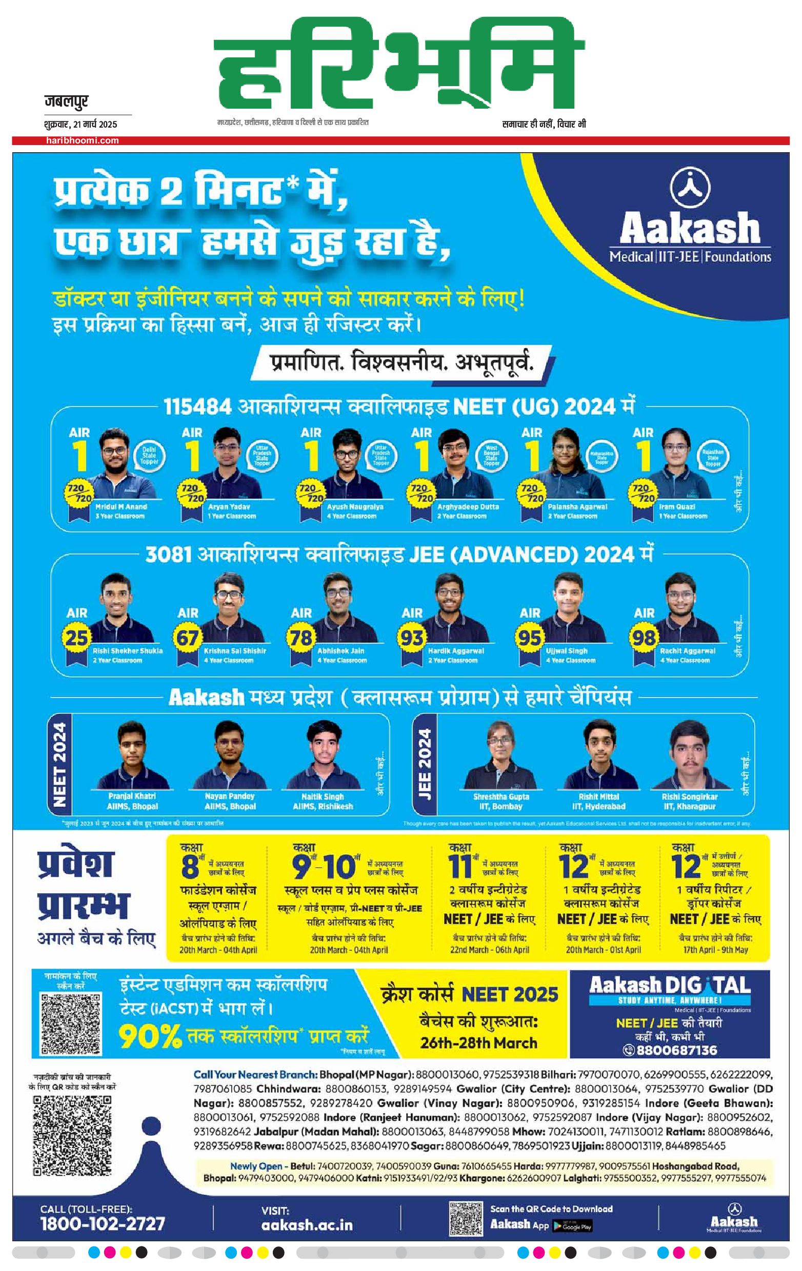 जबलपुर- मुख्य संस्करण - 21 Mar 2025 - - Page 1