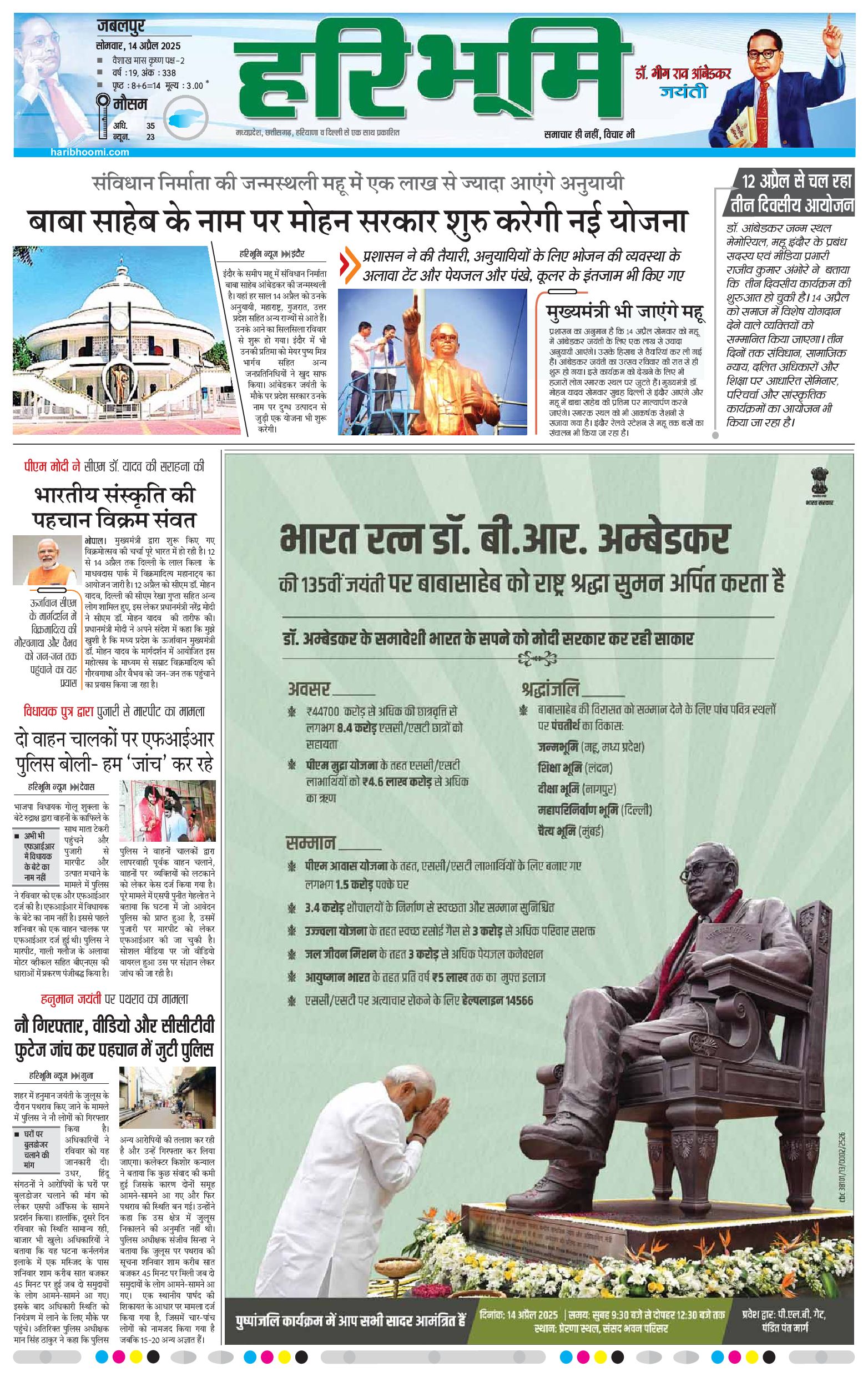 जबलपुर- मुख्य संस्करण - 14 Apr 2025 - - Page 1