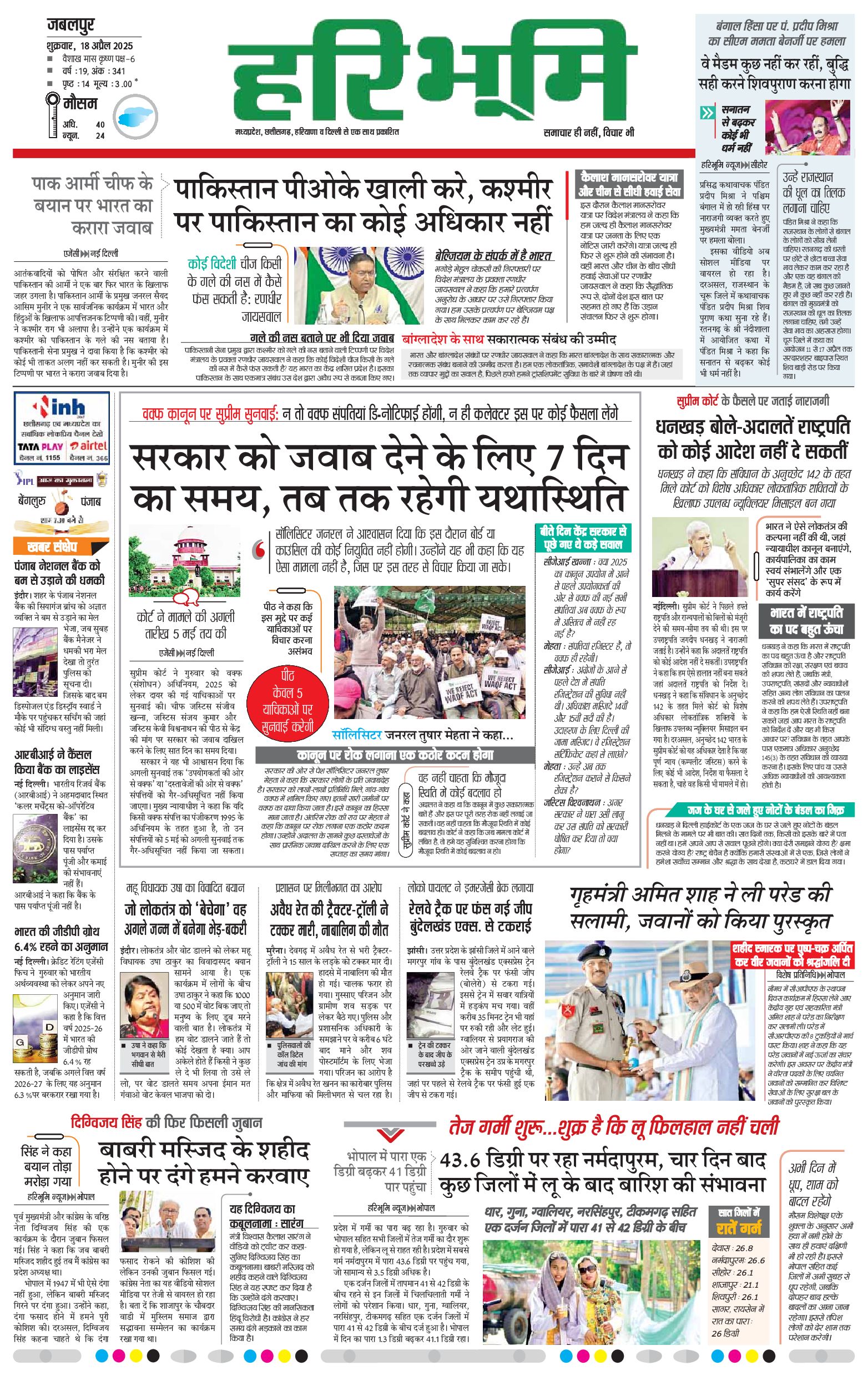जबलपुर- मुख्य संस्करण - 18 Apr 2025 - - Page 1