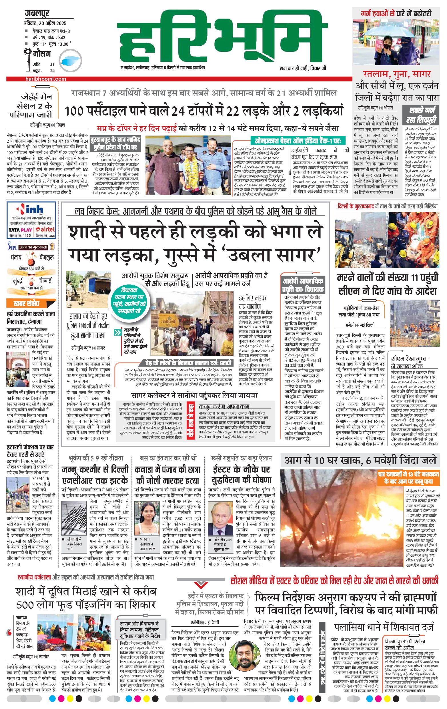 जबलपुर- मुख्य संस्करण - 20 Apr 2025 - - Page 1