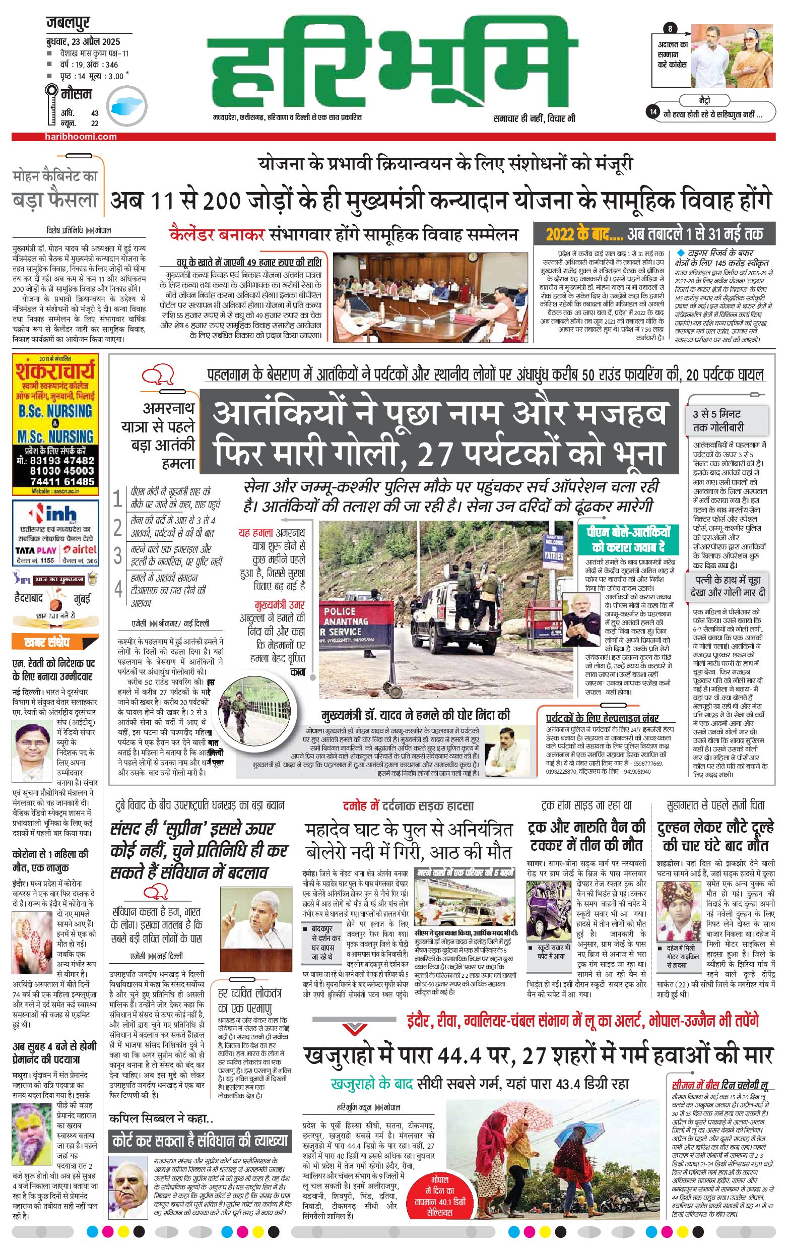जबलपुर- मुख्य संस्करण - 23 Apr 2025 - - Page 1