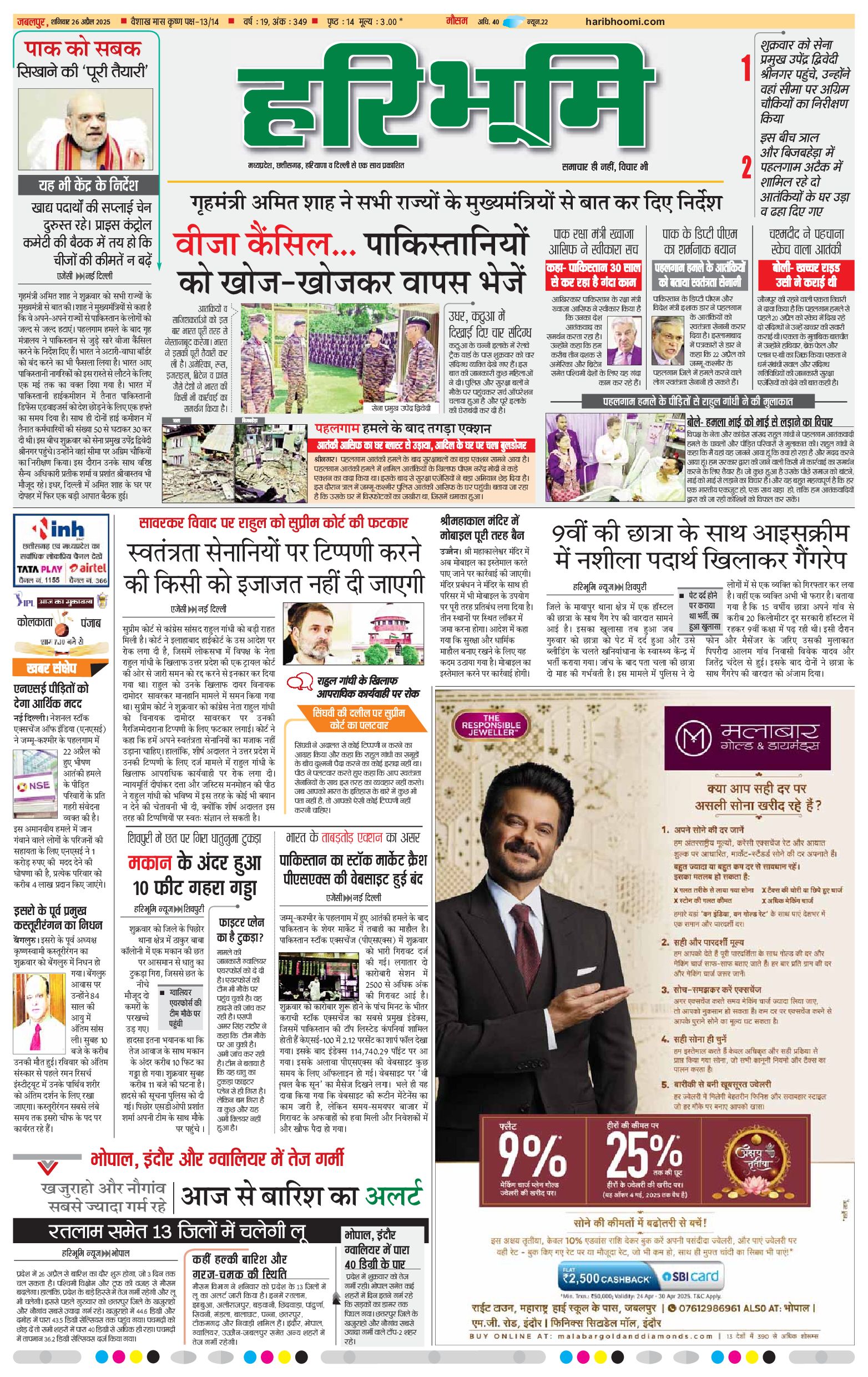 जबलपुर- मुख्य संस्करण - 26 Apr 2025 - - Page 1