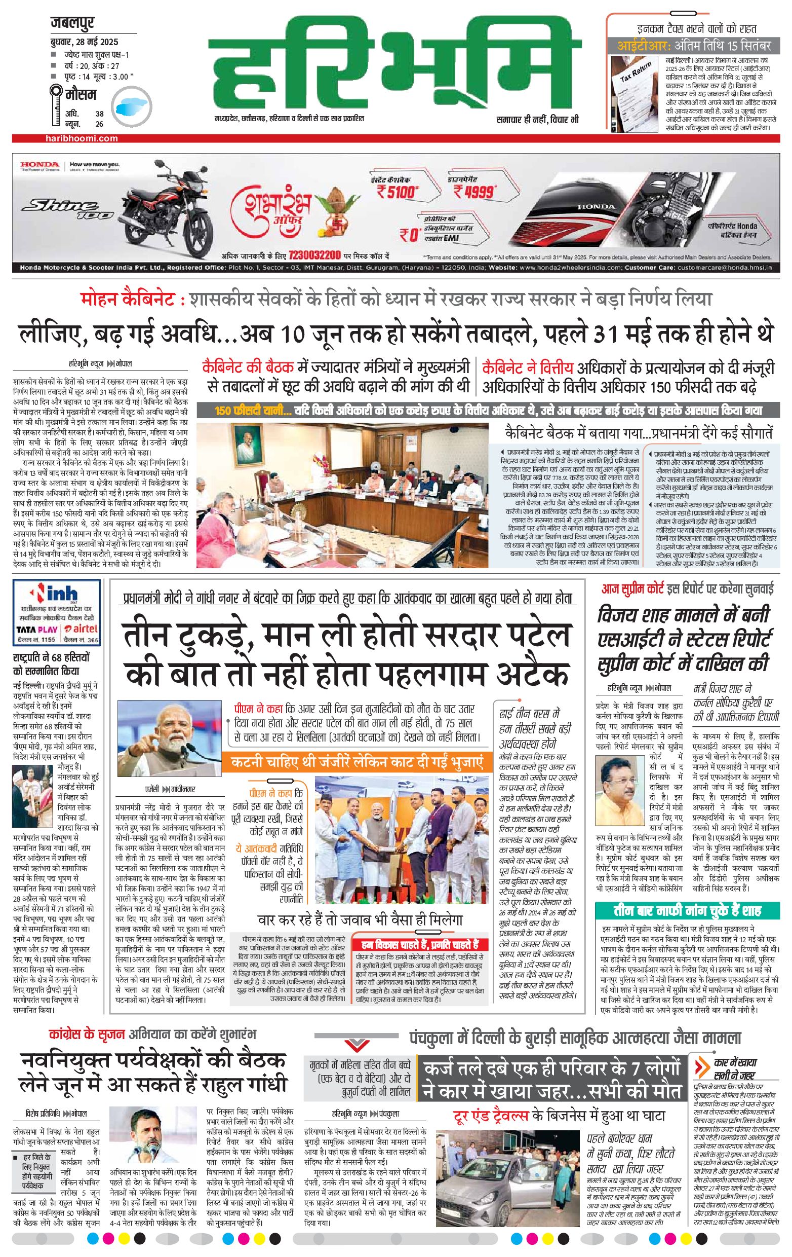 जबलपुर- मुख्य संस्करण - 28 May 2025 - - Page 1