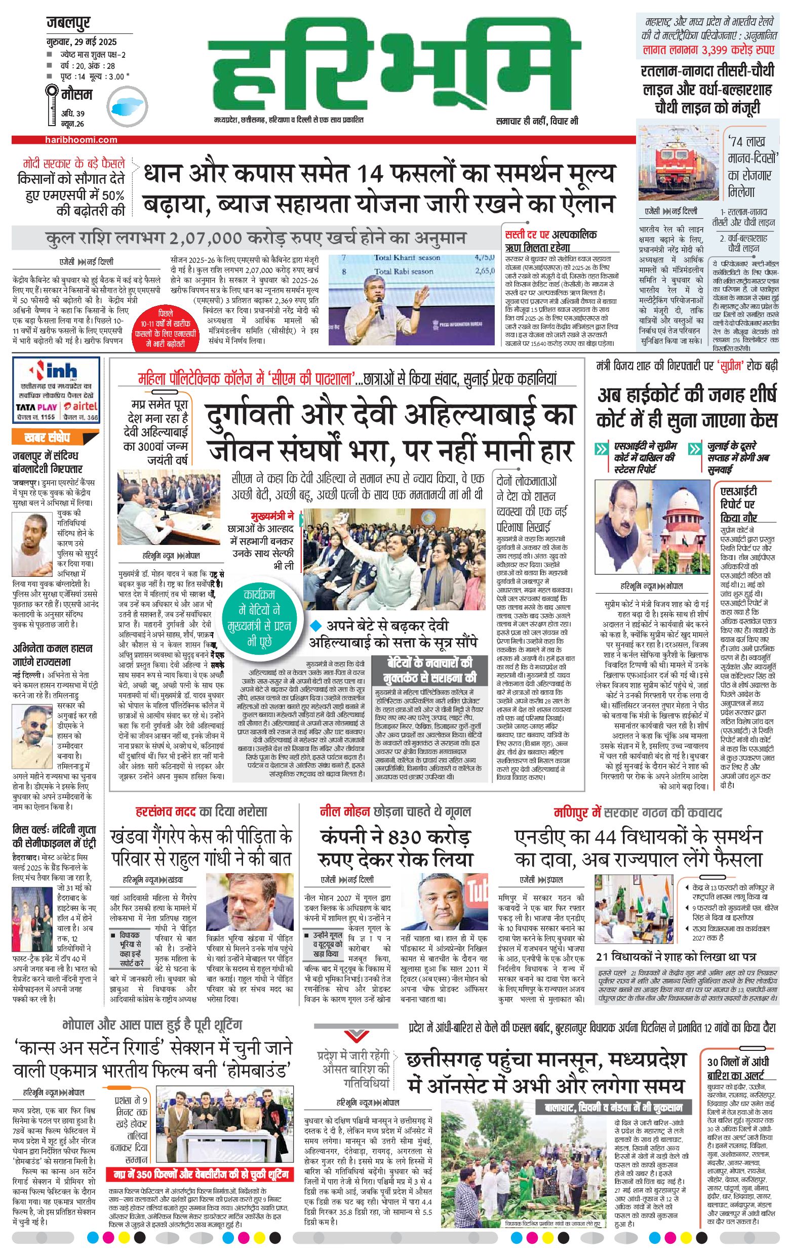 जबलपुर- मुख्य संस्करण - 29 May 2025 - - Page 1