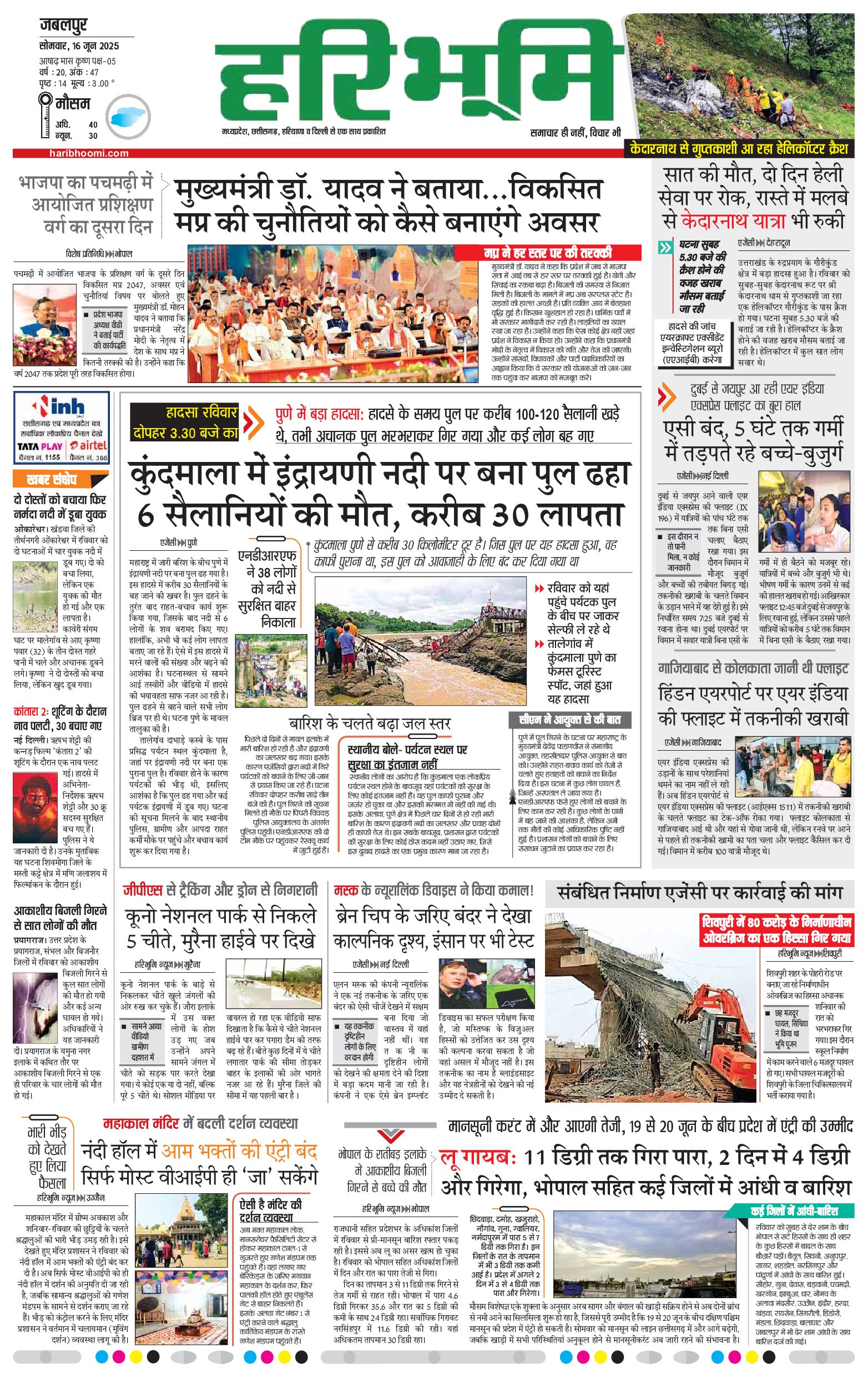 जबलपुर- मुख्य संस्करण - 16 Jun 2025 - - Page 1