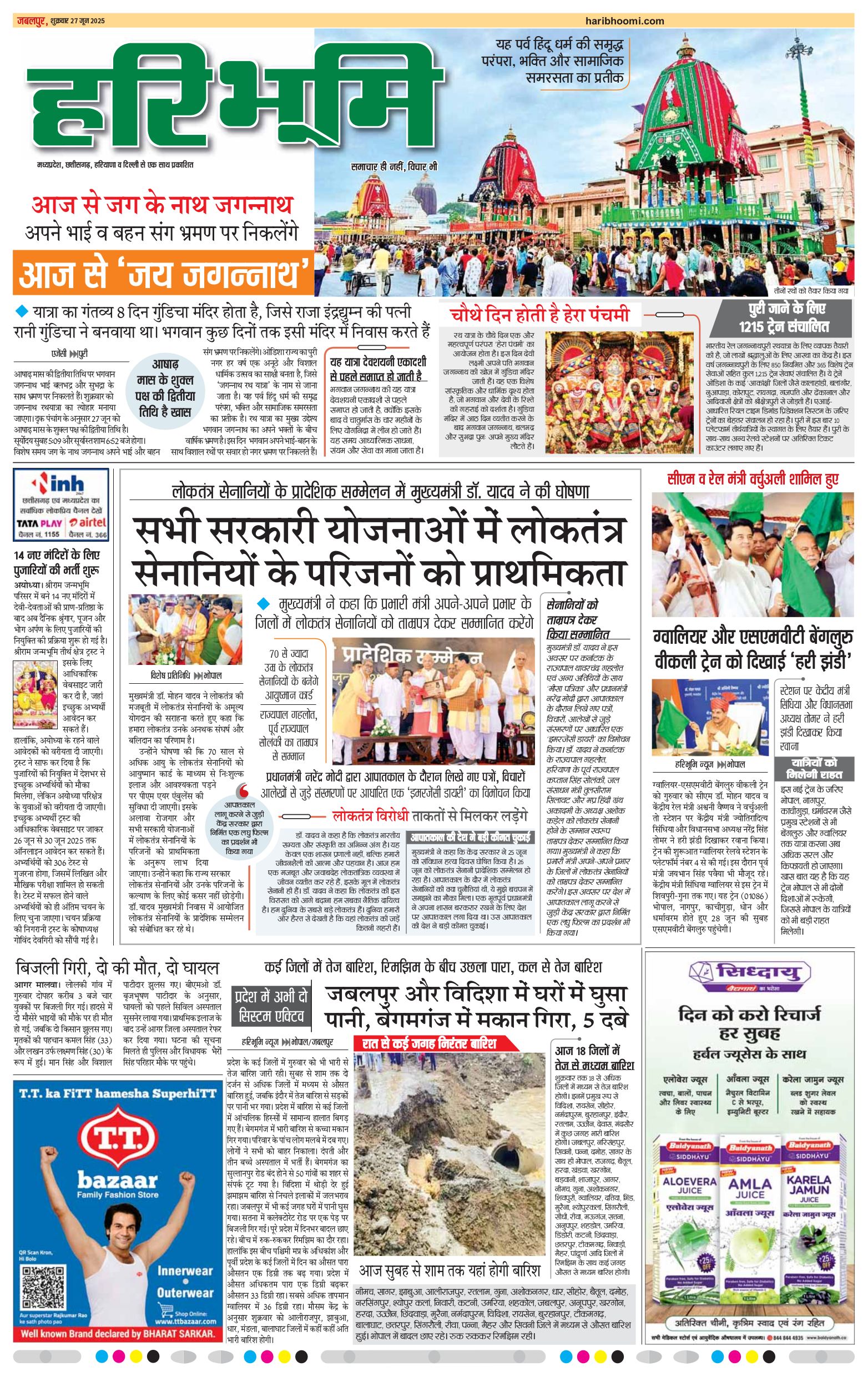 जबलपुर- मुख्य संस्करण - 27 Jun 2025 - - Page 1