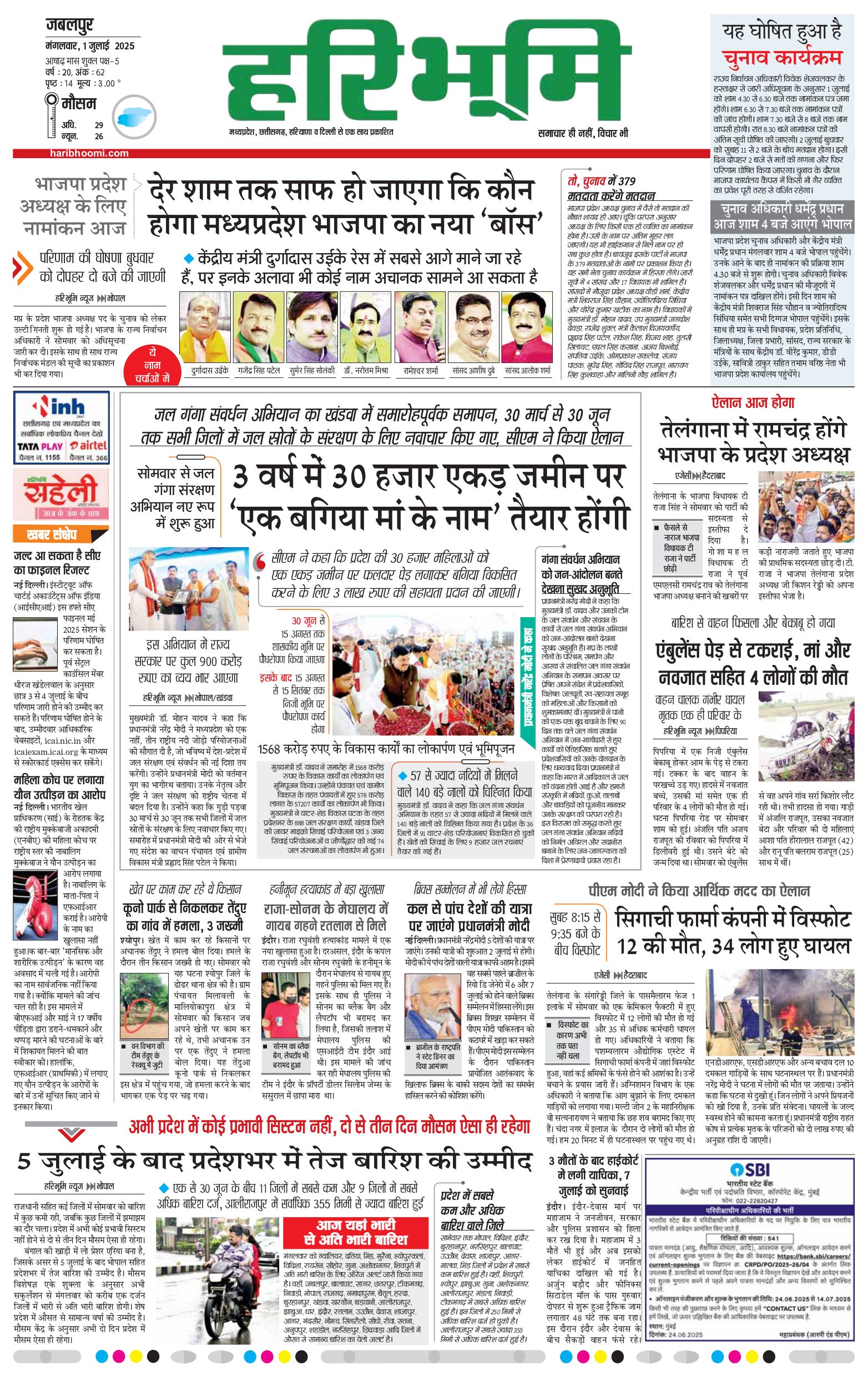 जबलपुर- मुख्य संस्करण - 01 Jul 2025 - - Page 1