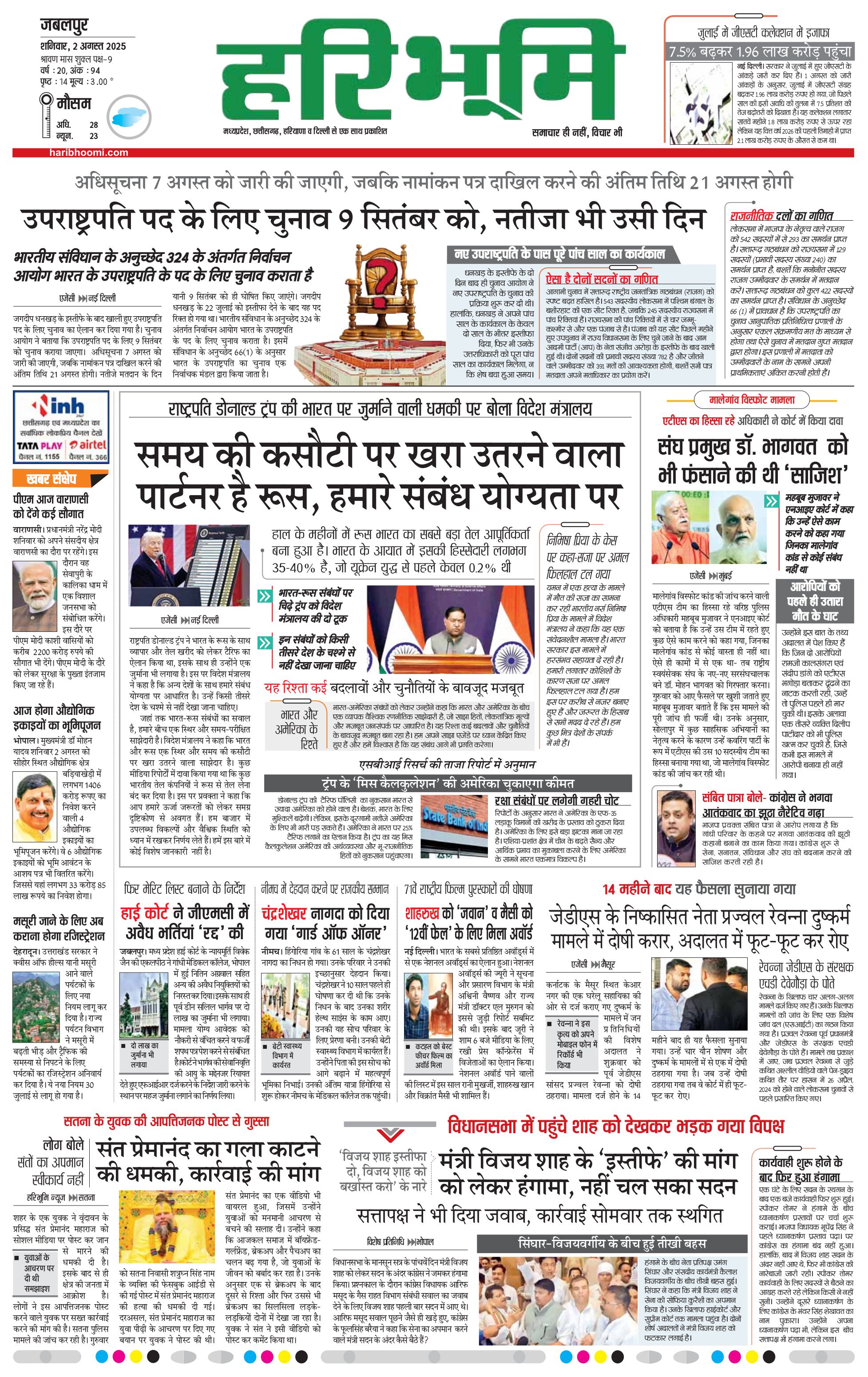 जबलपुर- मुख्य संस्करण - 02 Aug 2025 - - Page 1