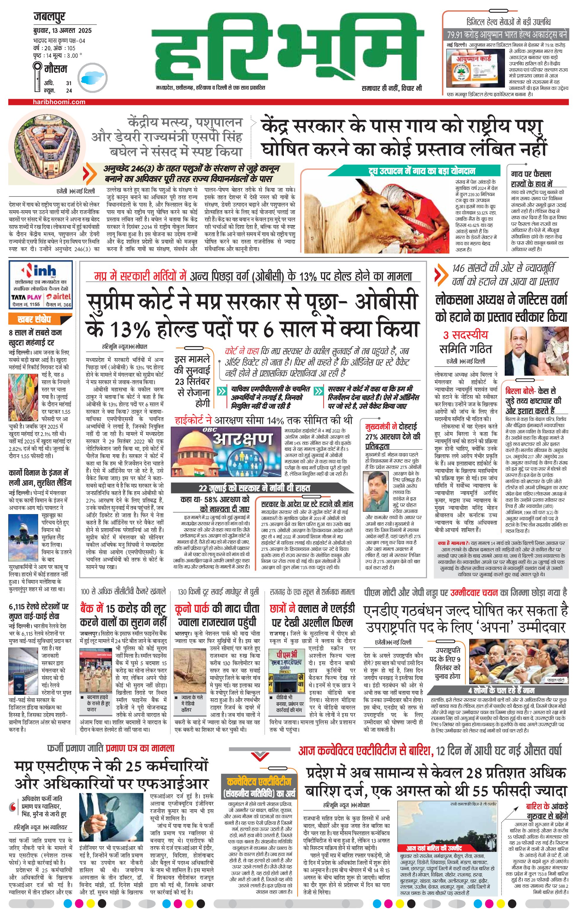 जबलपुर- मुख्य संस्करण - 13 Aug 2025 - - Page 1